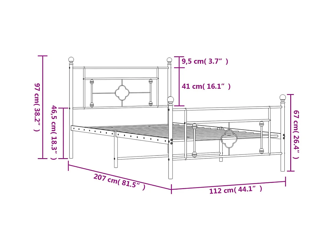 Cadre de lit métal sans matelas et pied de lit blanc 107x203 cm