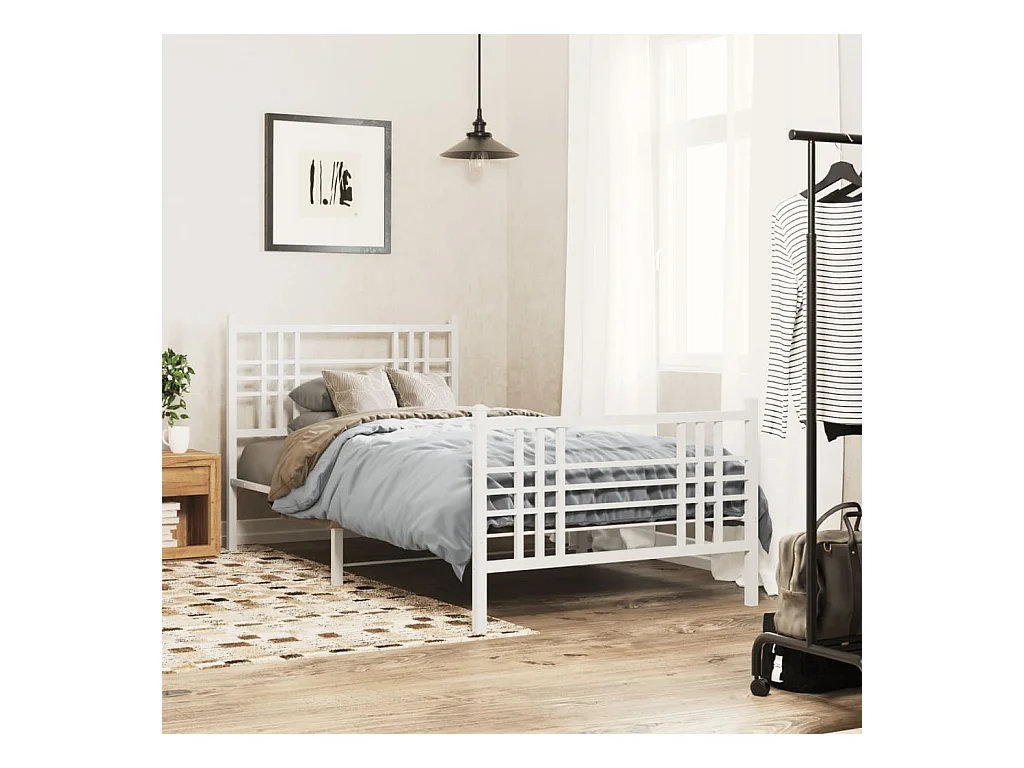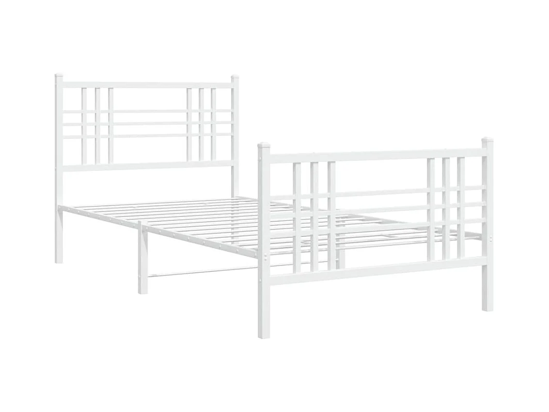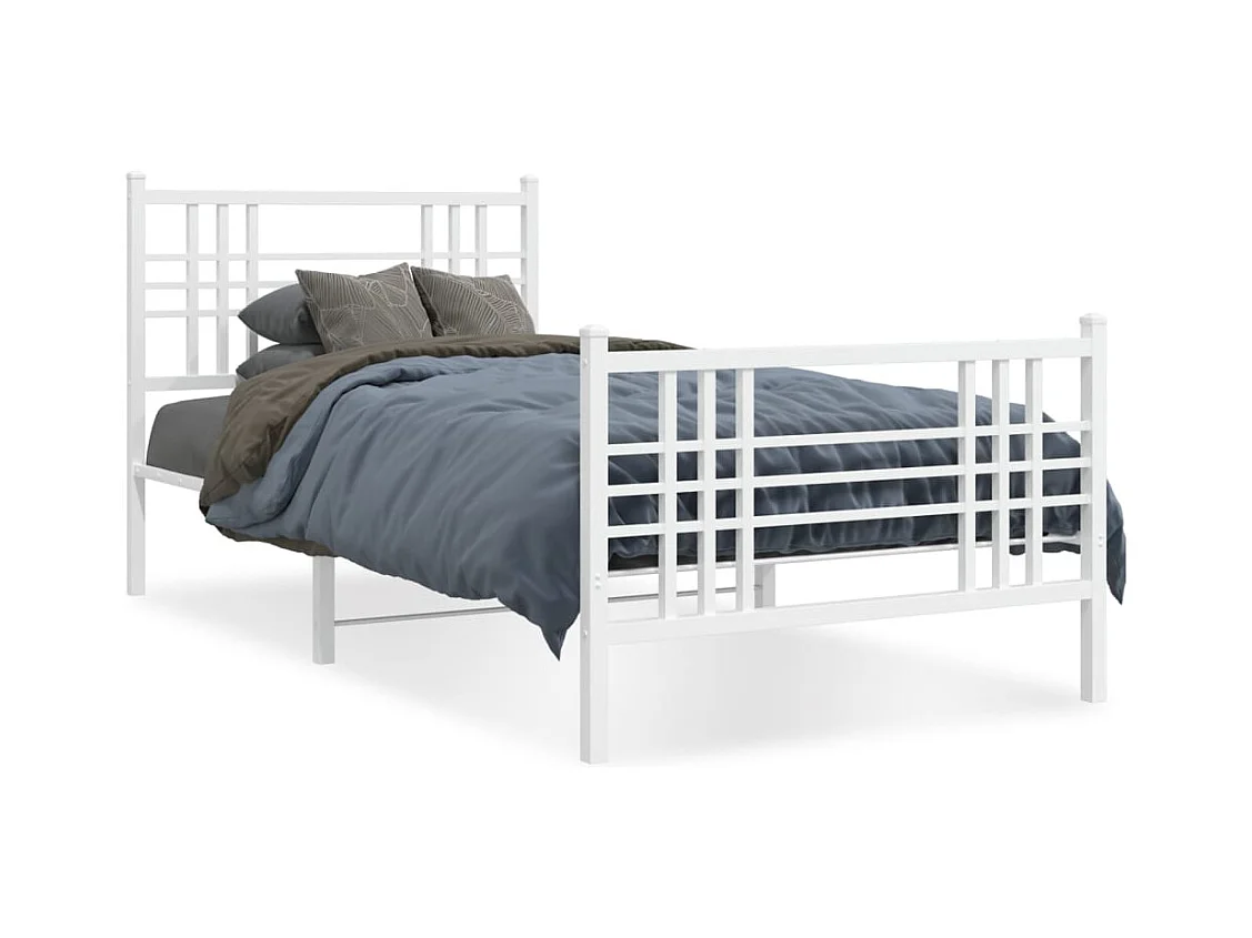 Cadre de lit métal sans matelas et pied de lit blanc 107x203 cm