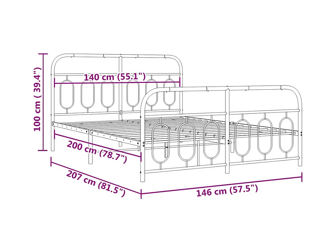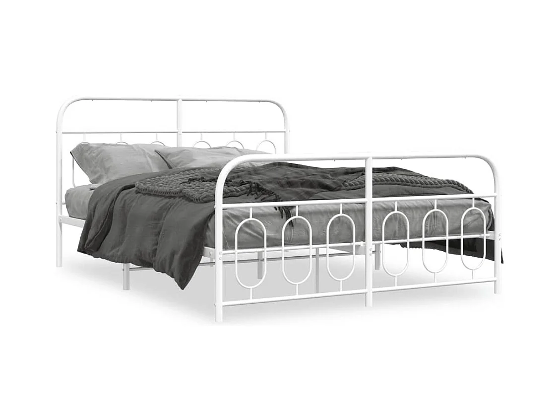 Cadre de lit métal sans matelas et pied de lit blanc 140x200 cm