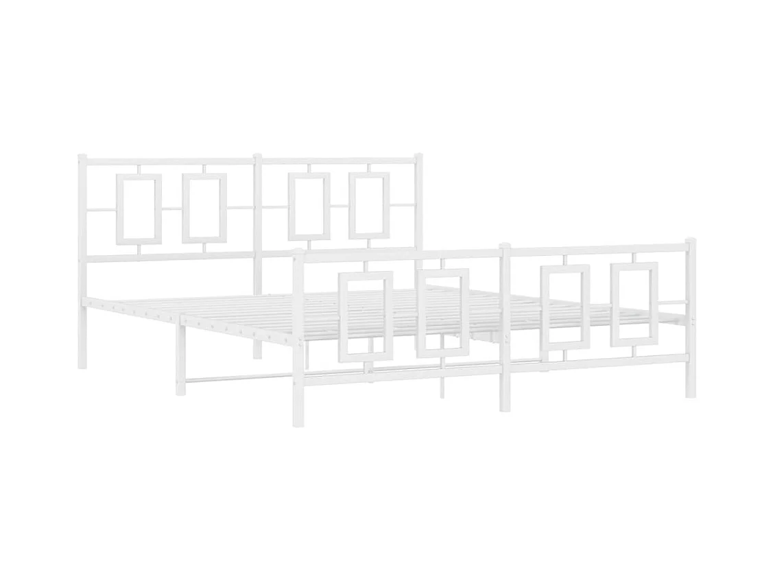 Cadre de lit métal sans matelas et pied de lit blanc 150x200 cm