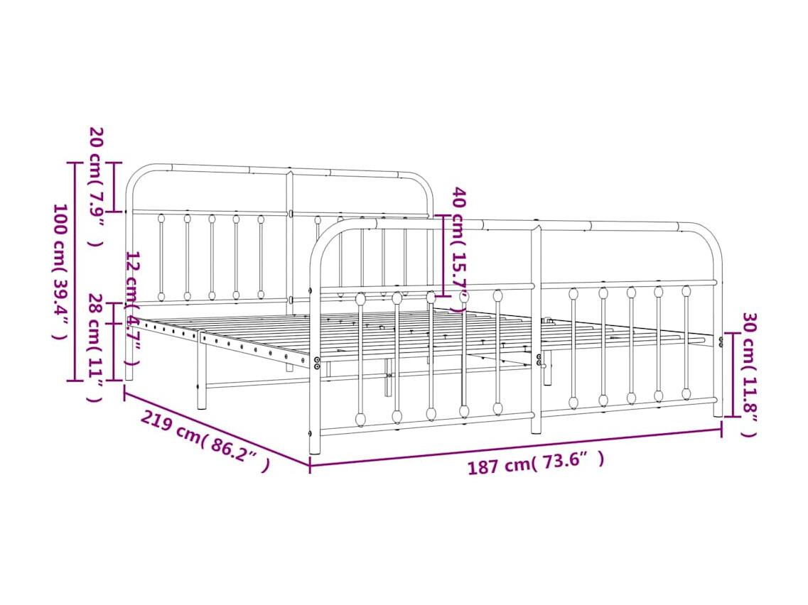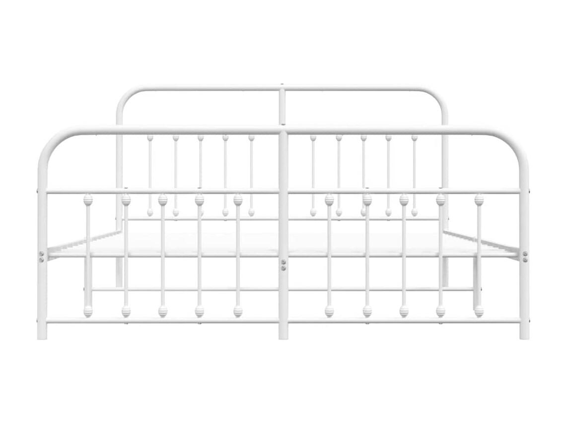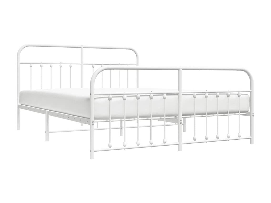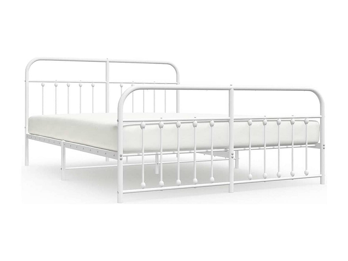 Cadre de lit métal sans matelas et pied de lit blanc 183x213 cm