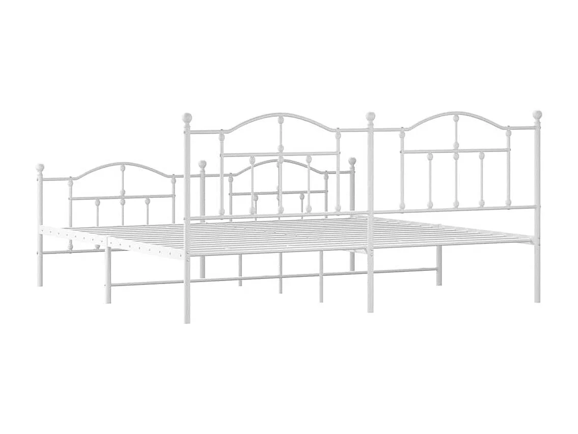 Cadre de lit métal sans matelas et pied de lit blanc 193x203 cm