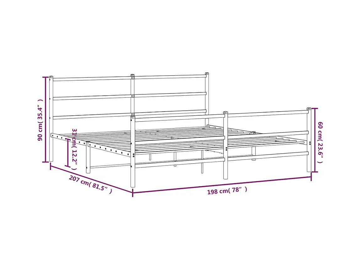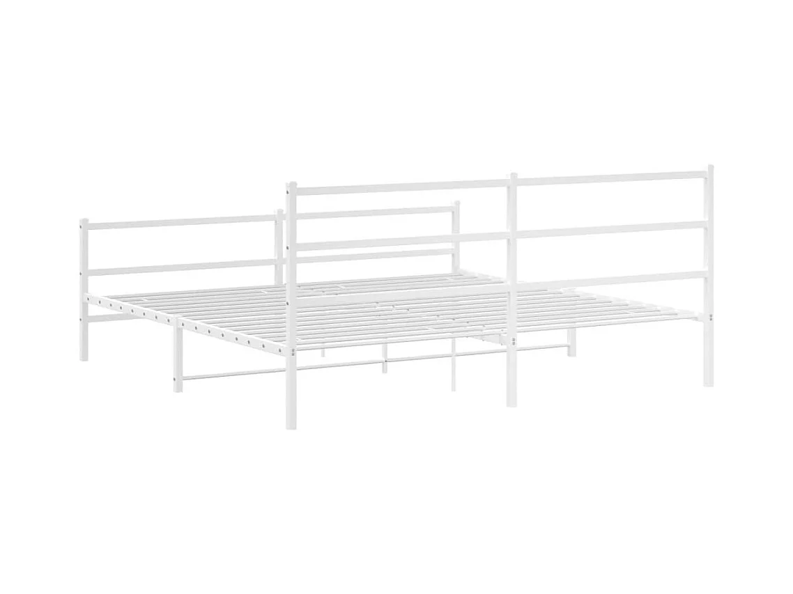 Cadre de lit métal sans matelas et pied de lit blanc 193x203 cm