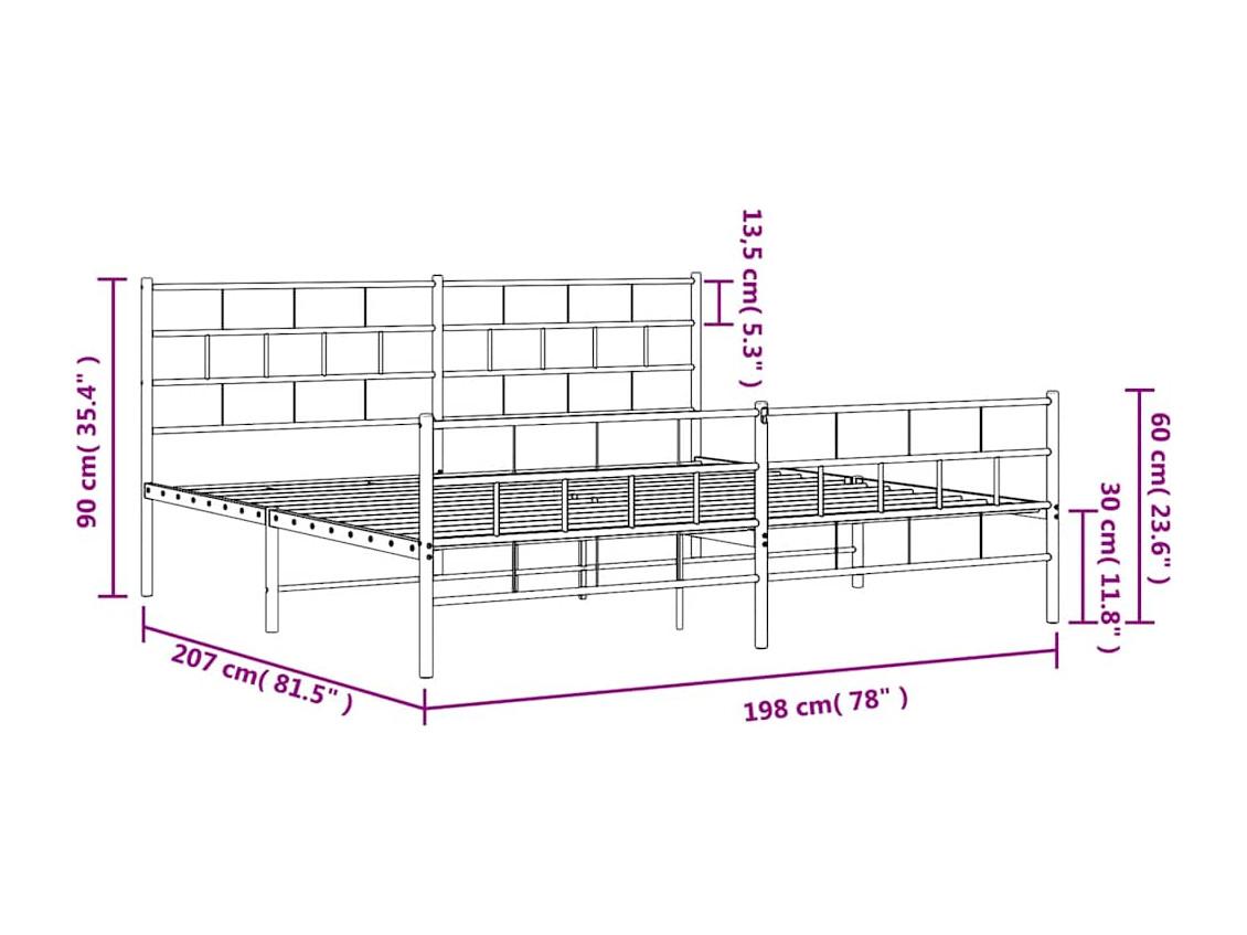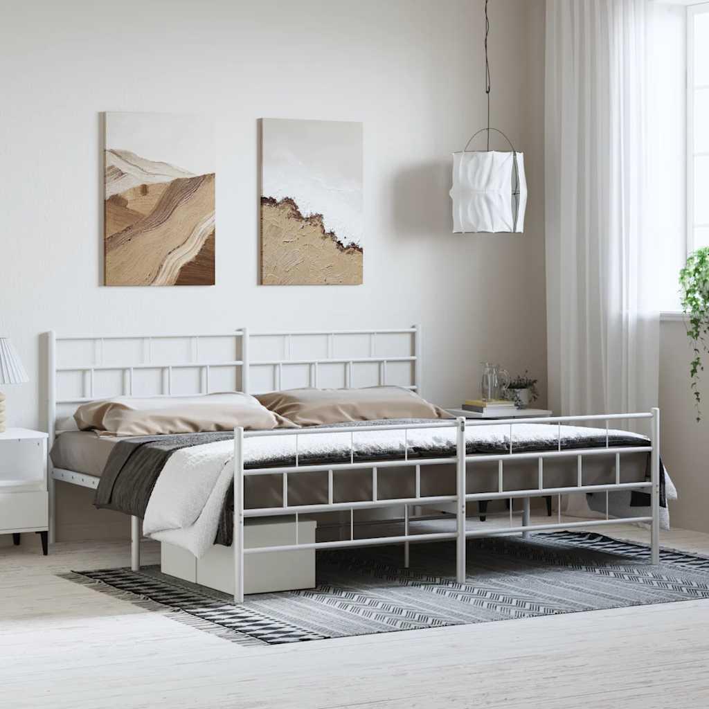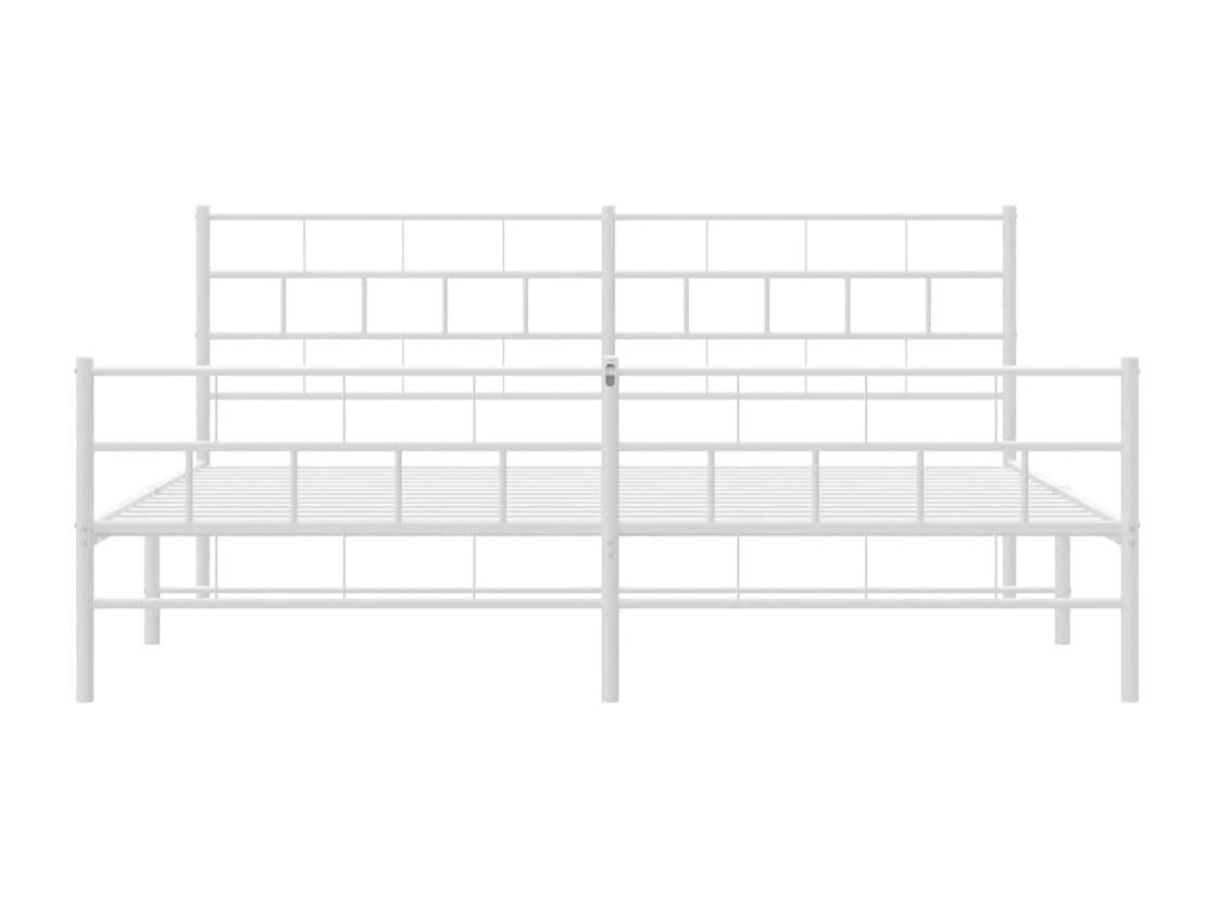 Cadre de lit métal sans matelas et pied de lit blanc 193x203 cm