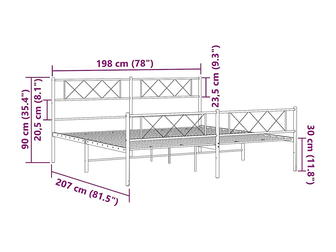 Cadre de lit métal sans matelas et pied de lit blanc 193x203 cm