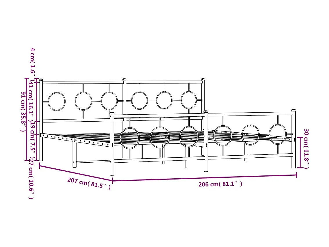 Cadre de lit métal sans matelas et pied de lit blanc 200x200 cm