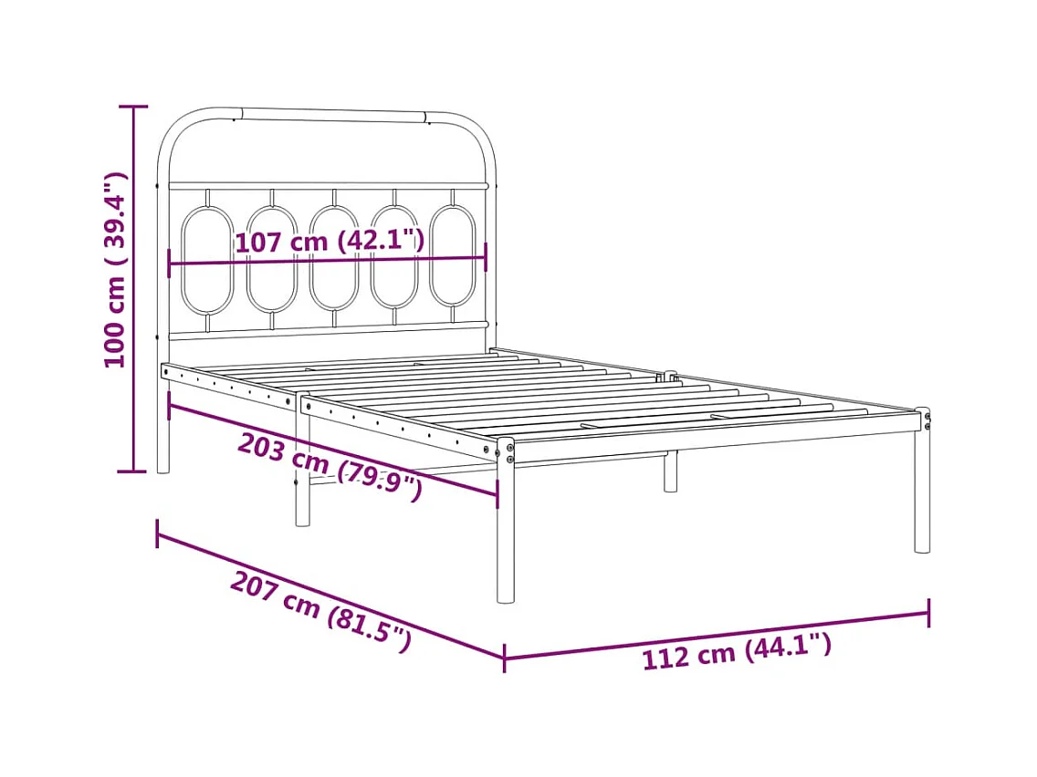 Cadre de lit métal sans matelas et tête de lit blanc 107x203 cm