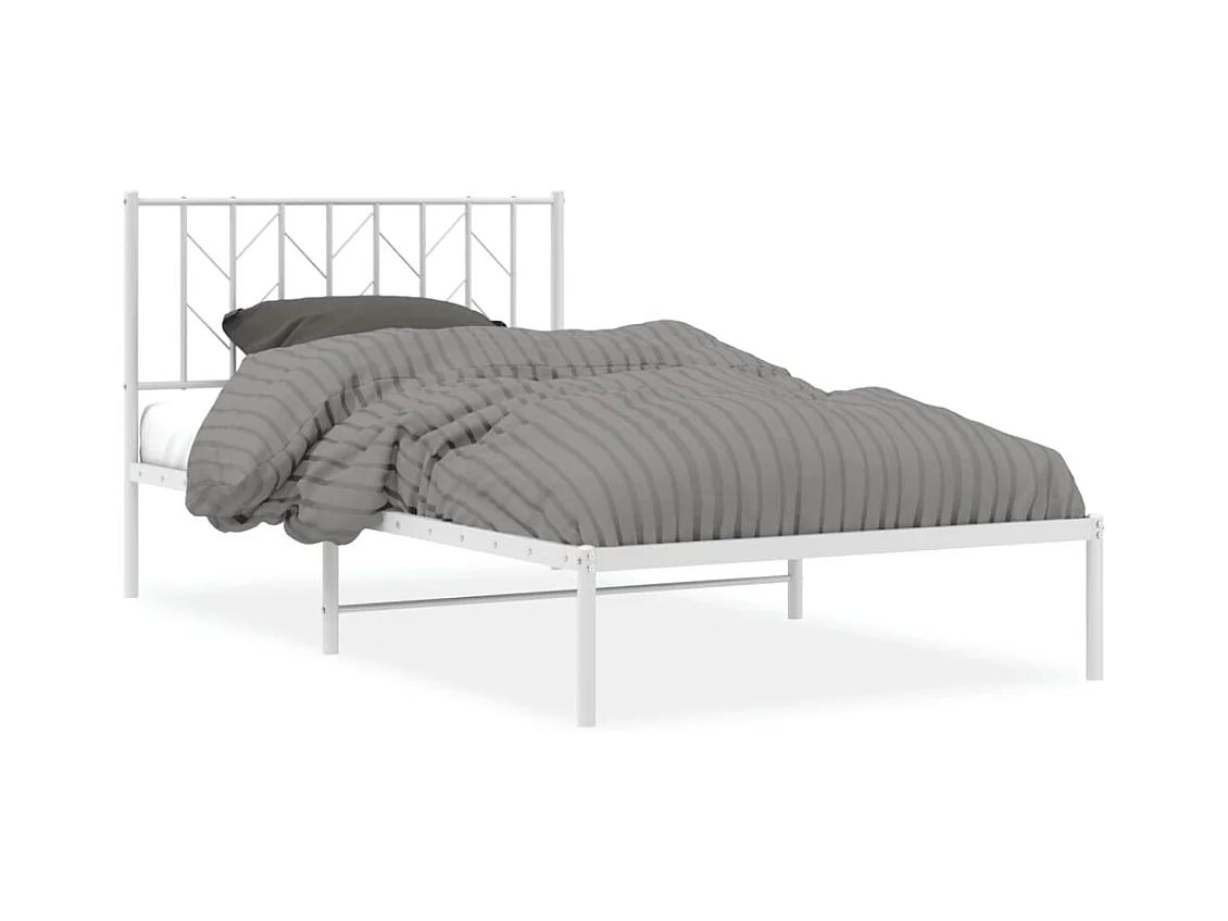 Cadre de lit métal sans matelas et tête de lit blanc 107x203 cm