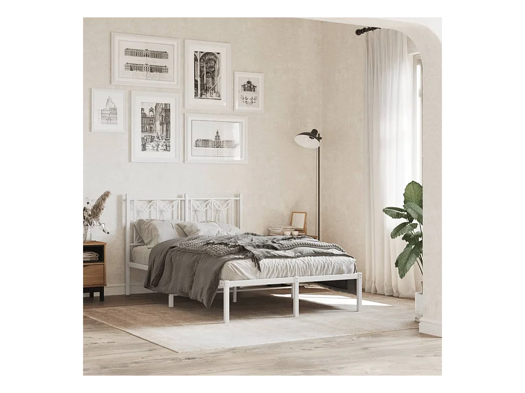 Lit double métal + tête de lit/pied de lit blanc 120x200cm FR97607