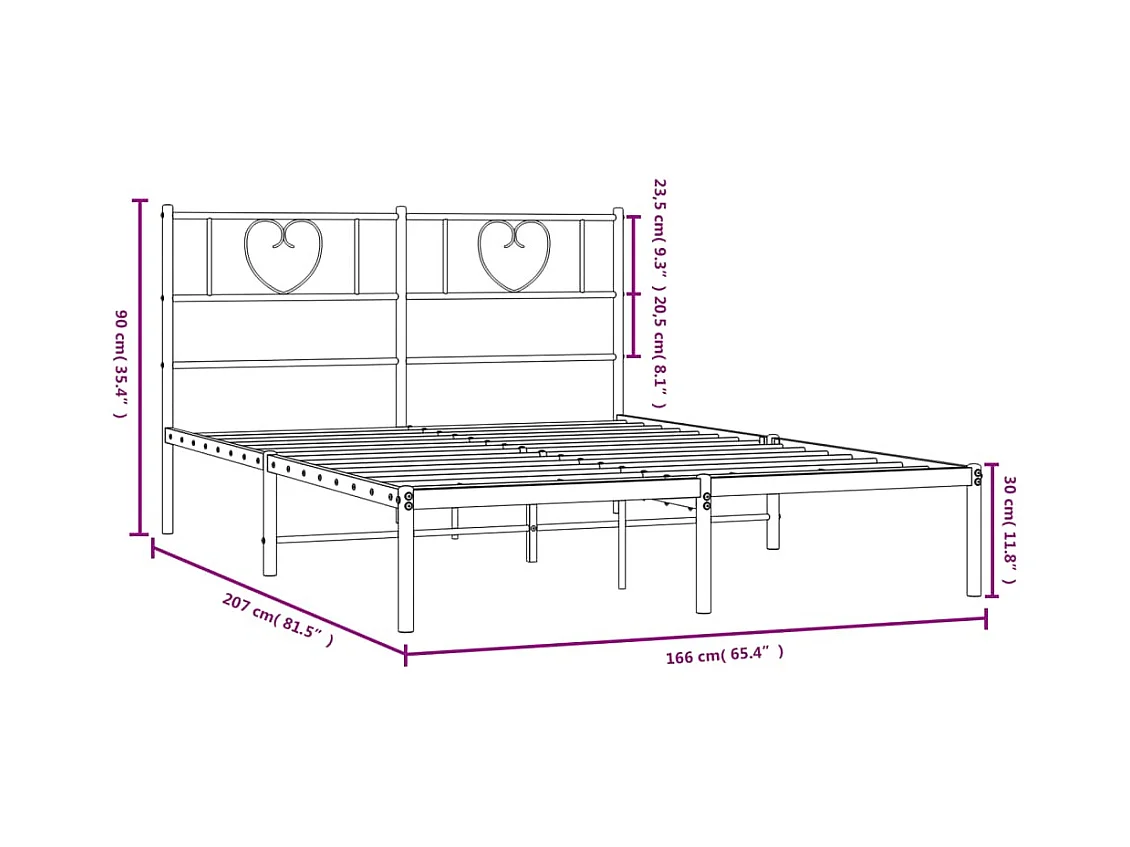Lit double métal + tête de lit noir 160x200 cm FR31901