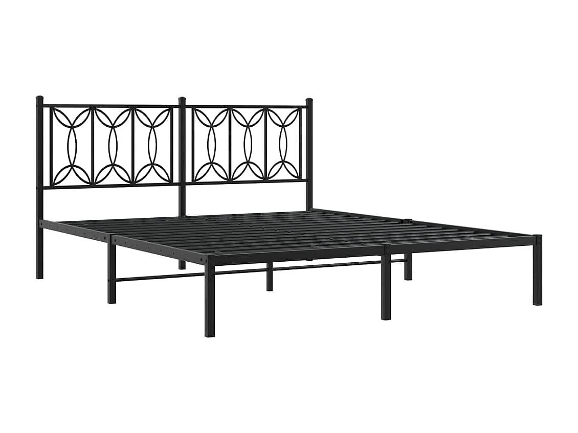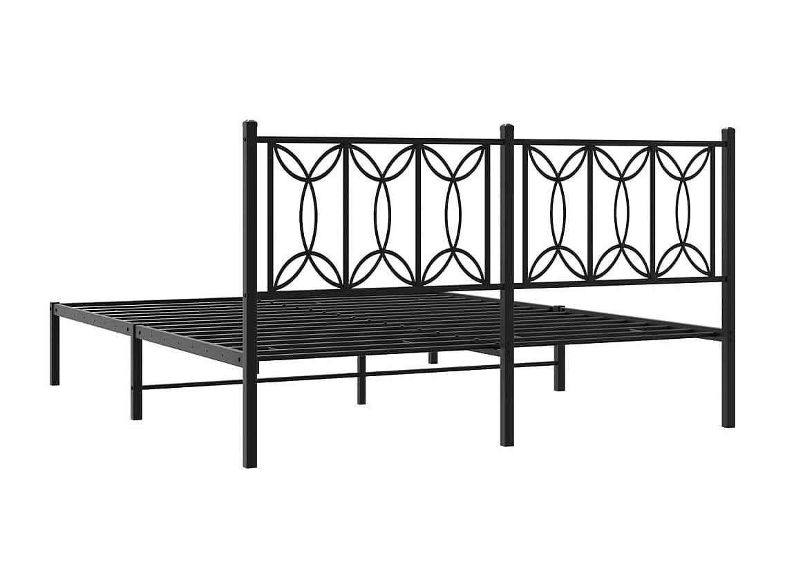 Cadre de lit métal sans matelas et tête de lit noir 160x200 cm