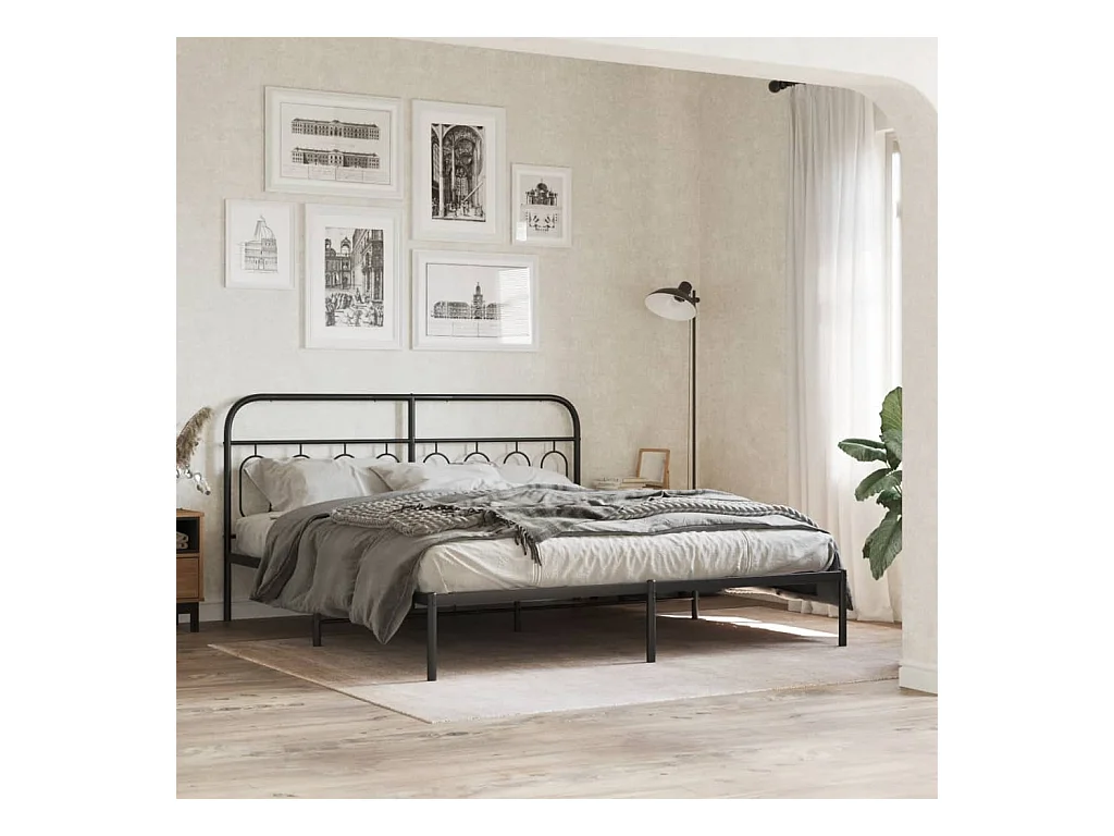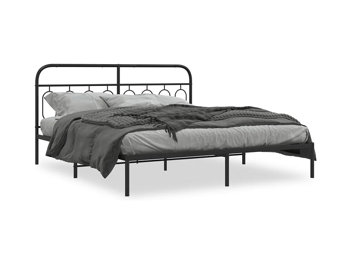 Lit double métal + tête de lit noir 183x203 cm FR72085