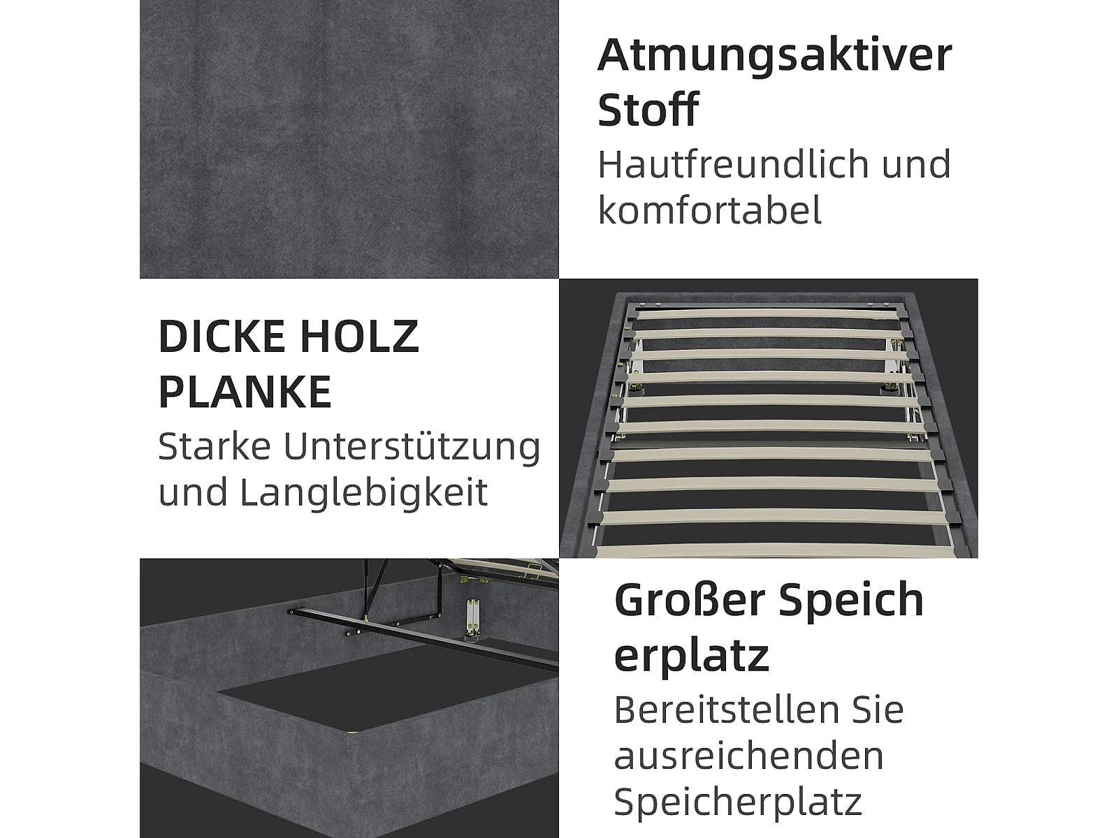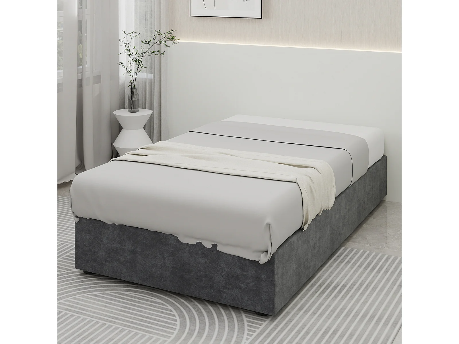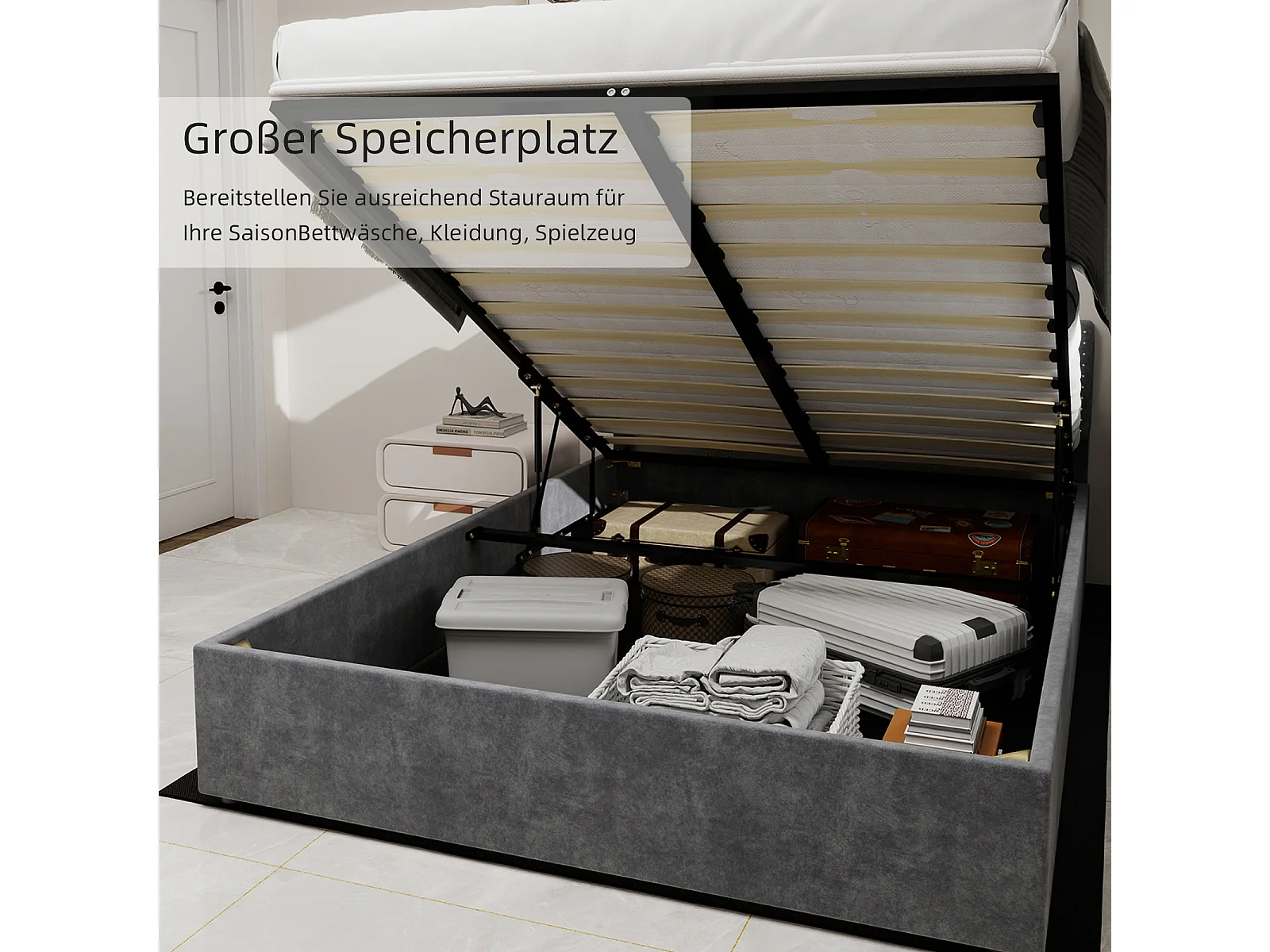 Cadre de lit moderne 90x200 cm en velours gris avec mécanisme à gaz – Mobilier moderne, sans tête de lit et matelas