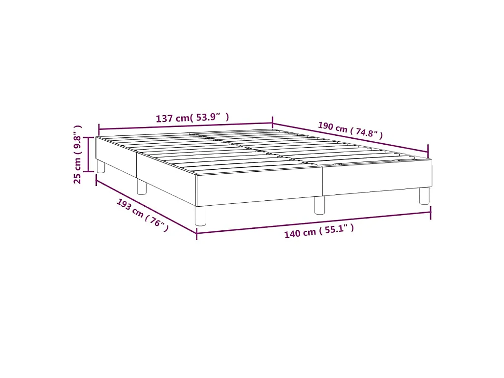 Cadre de lit à lattes noir 140x190 cm tissu