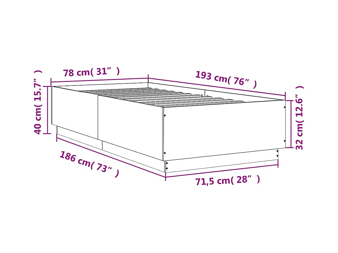 Cadre de lit sans matelas noir 75x190 cm bois ingénierie