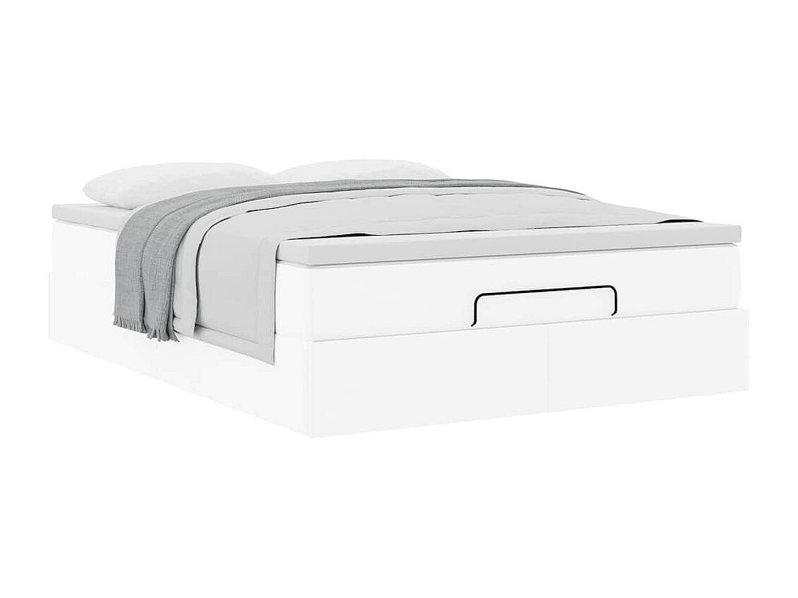 Cadre de lit ottoman avec matelas blanc 140x190 cm similicuir