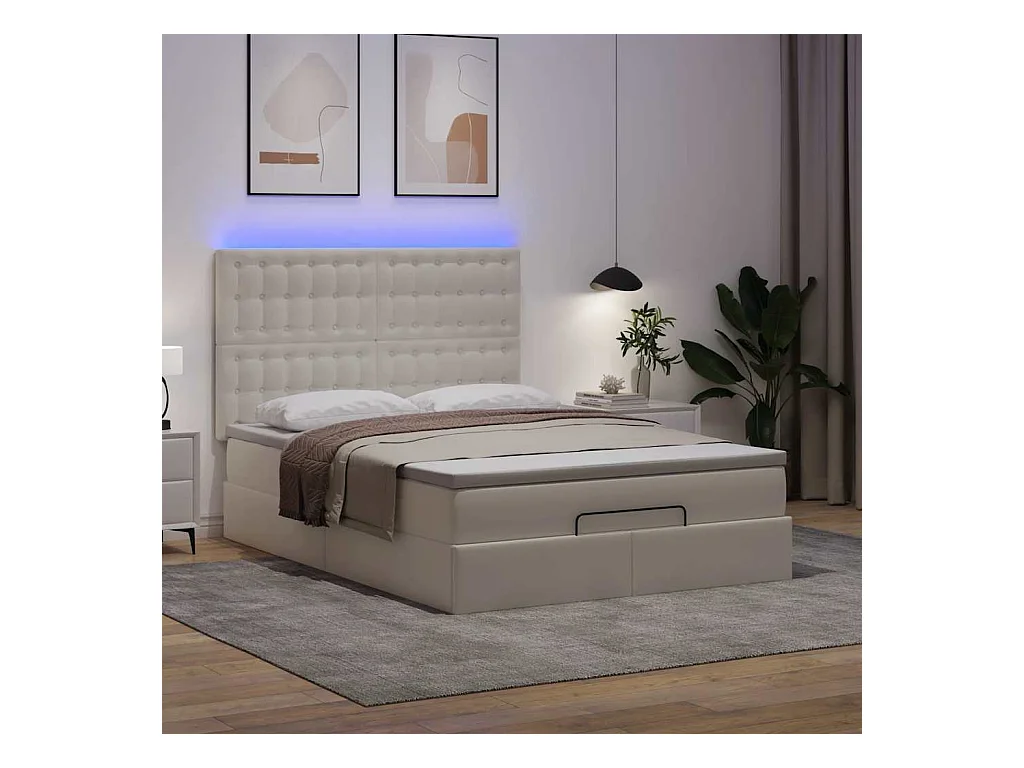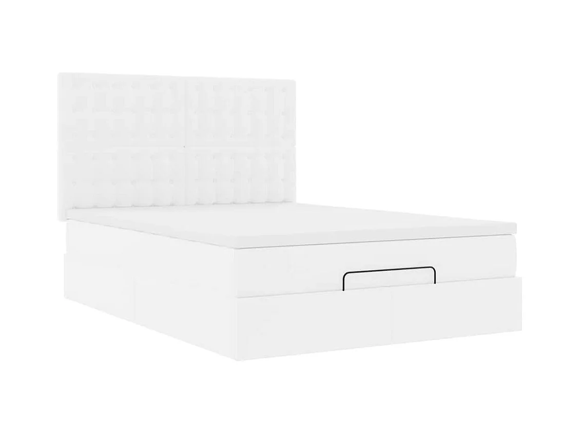 Cadre de lit ottoman avec matelas blanc 140x200 cm similicuir