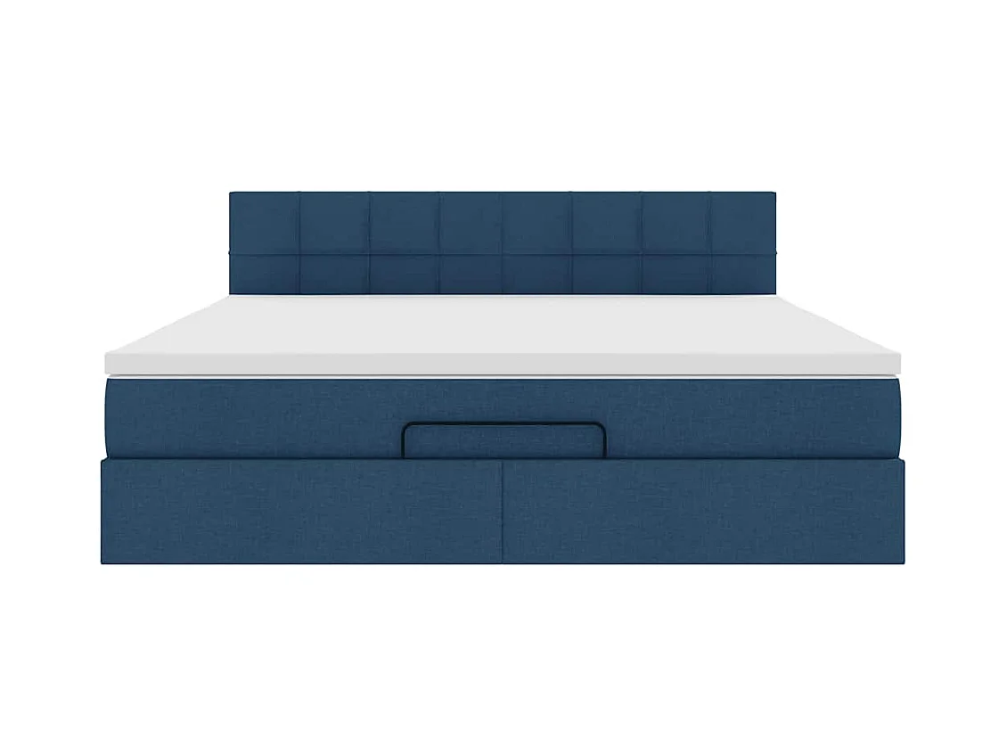 Cadre de lit ottoman avec matelas bleu 160x200 cm tissu