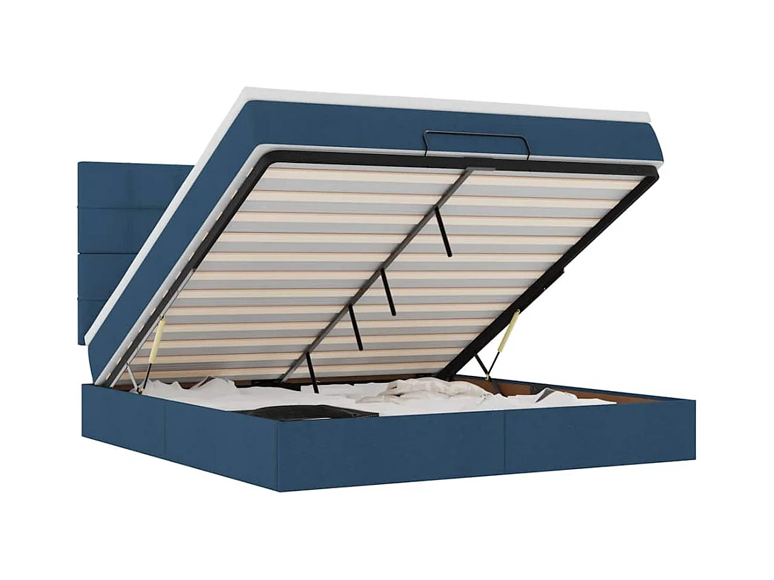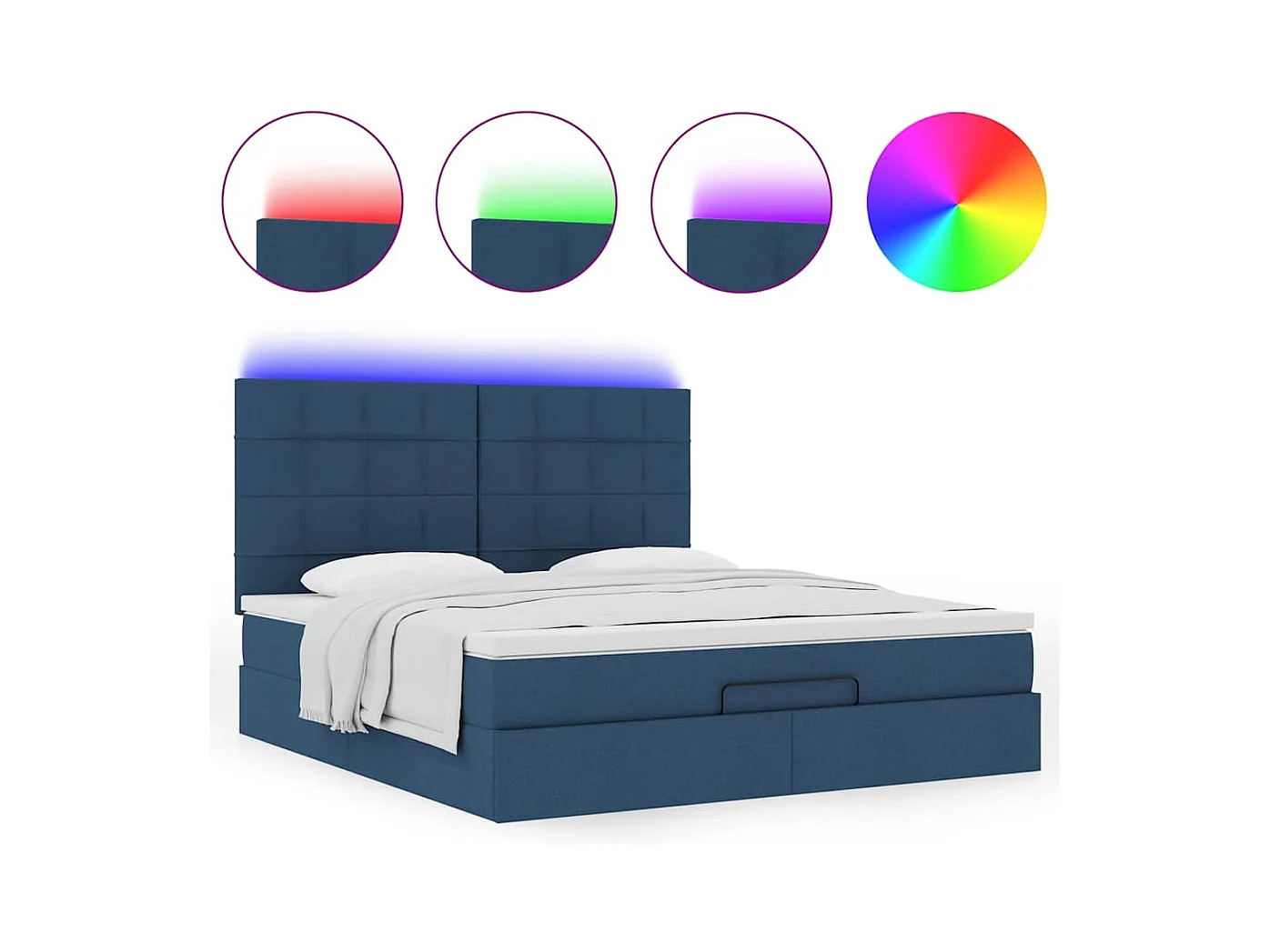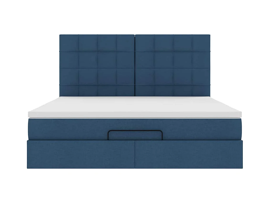 Cadre de lit ottoman avec matelas bleu 180x200 cm tissu