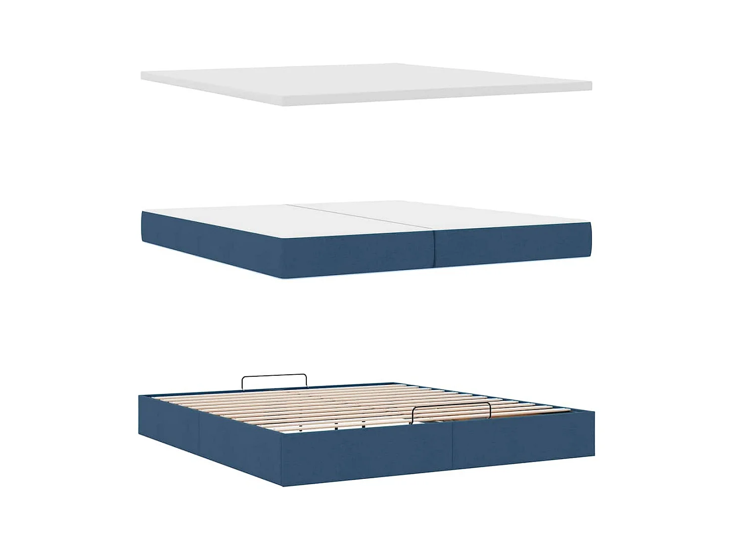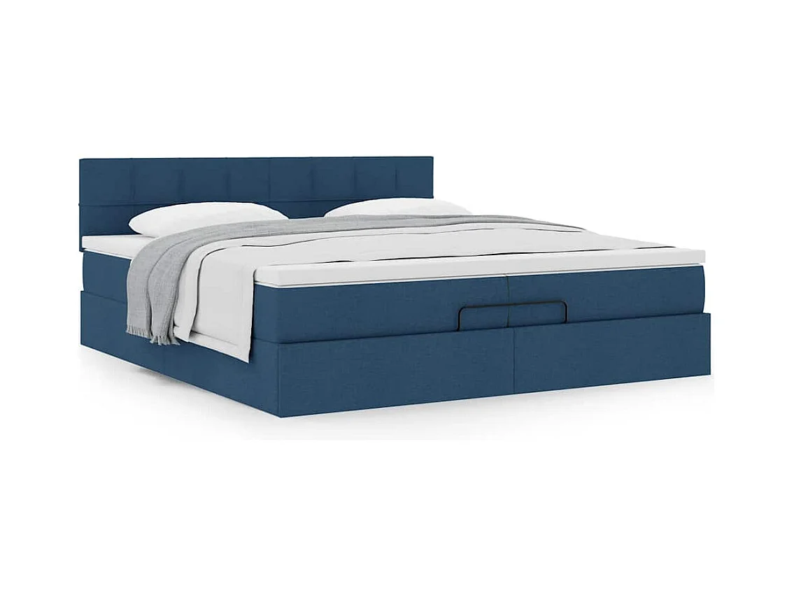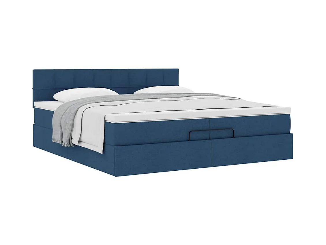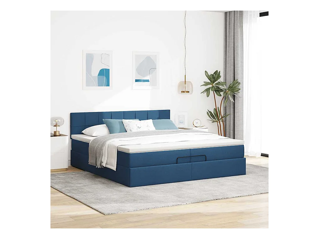 Cadre de lit ottoman avec matelas bleu 200x200cm tissu