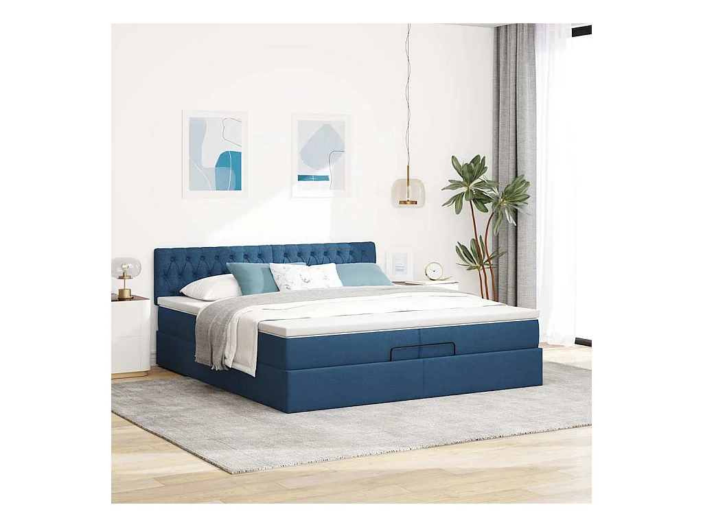 Cadre de lit ottoman avec matelas bleu 200x200cm tissu