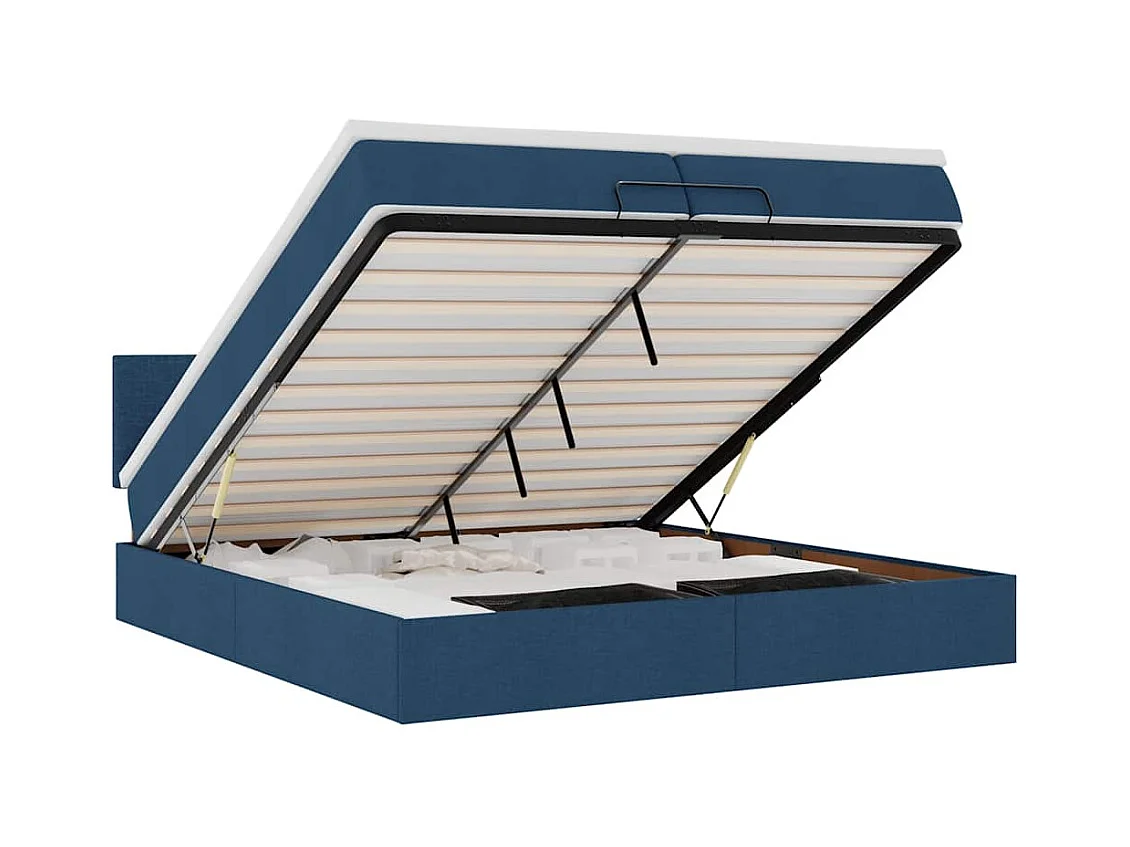 Cadre de lit ottoman avec matelas bleu 200x200cm tissu