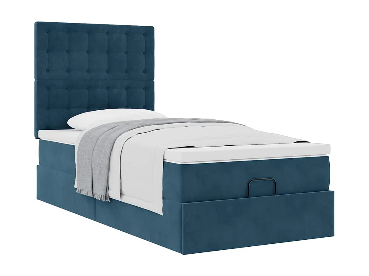 Cadre de lit ottoman avec matelas bleu foncé 100x200 cm velours