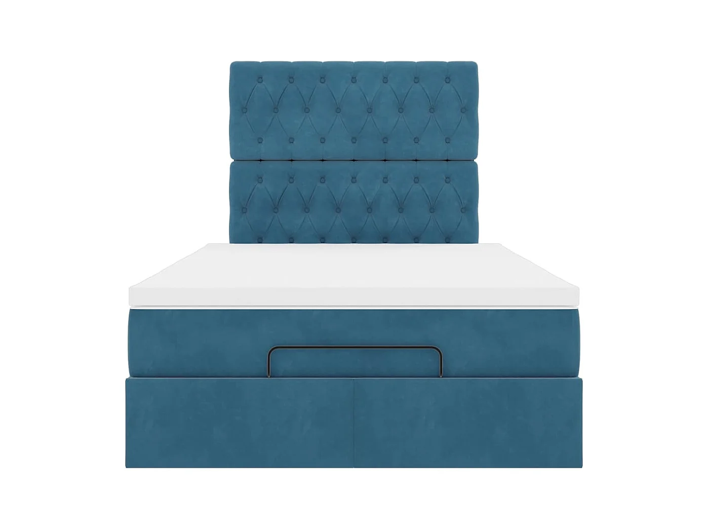 Cadre de lit ottoman avec matelas bleu foncé 120x190 cm velours