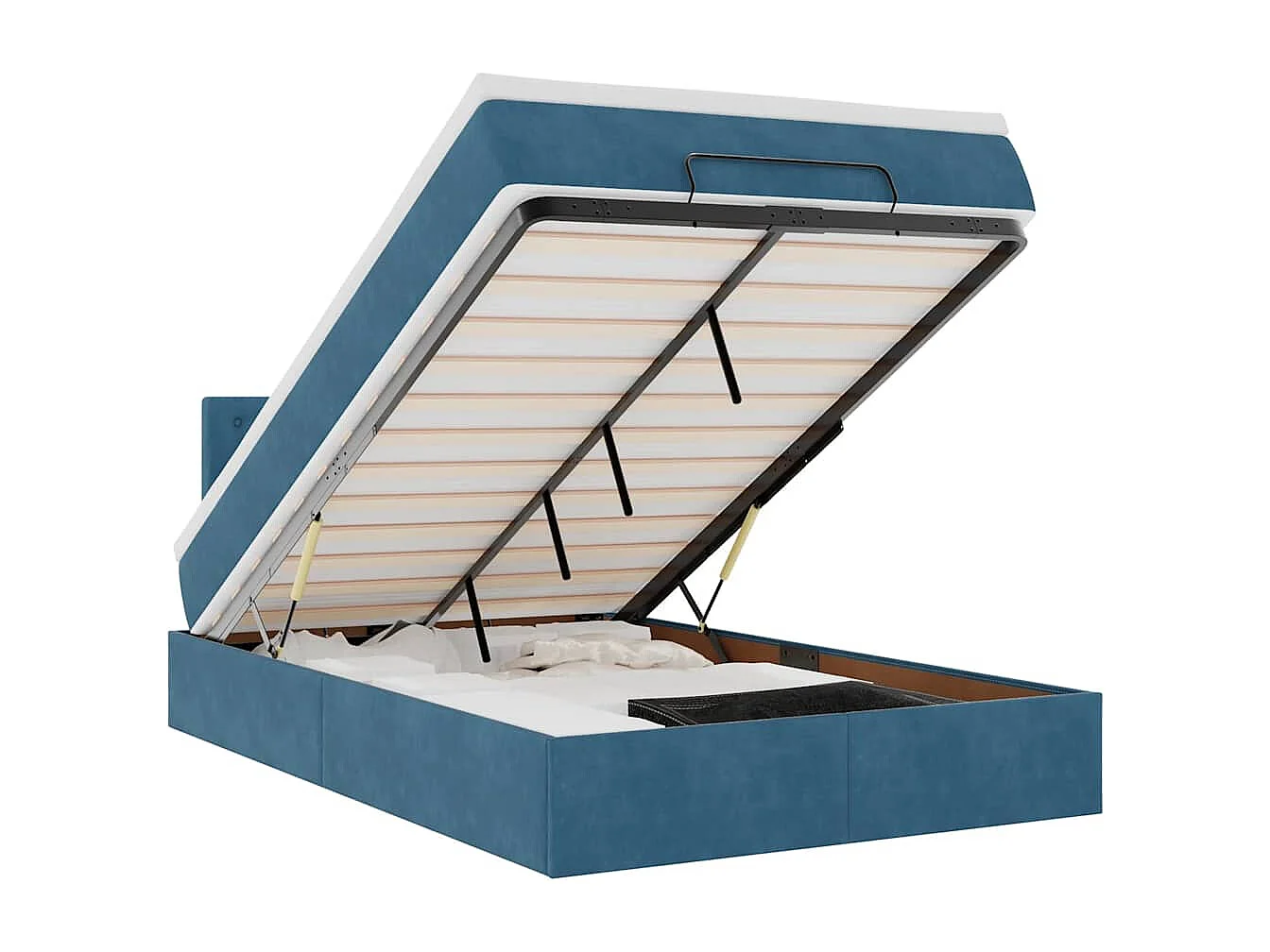 Cadre de lit ottoman avec matelas bleu foncé 120x200 cm velours