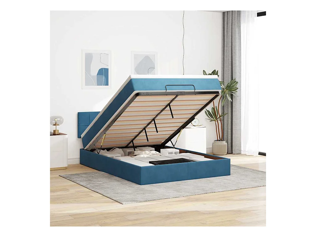 Cadre de lit ottoman sans matelas bleu foncé 140x190 cm velours