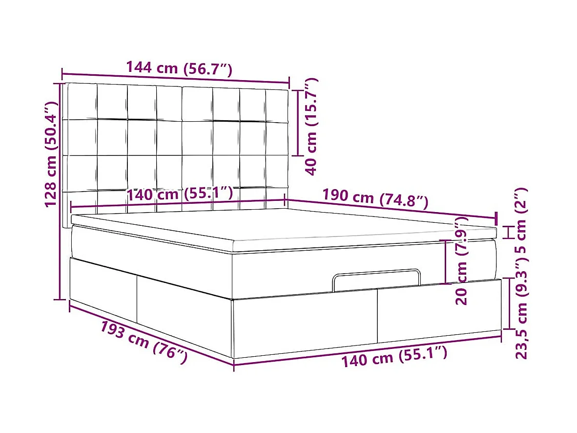 Cadre de lit ottoman avec matelas bleu foncé 140x190 cm velours