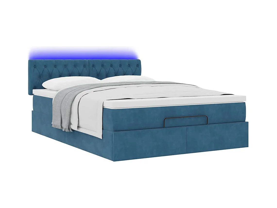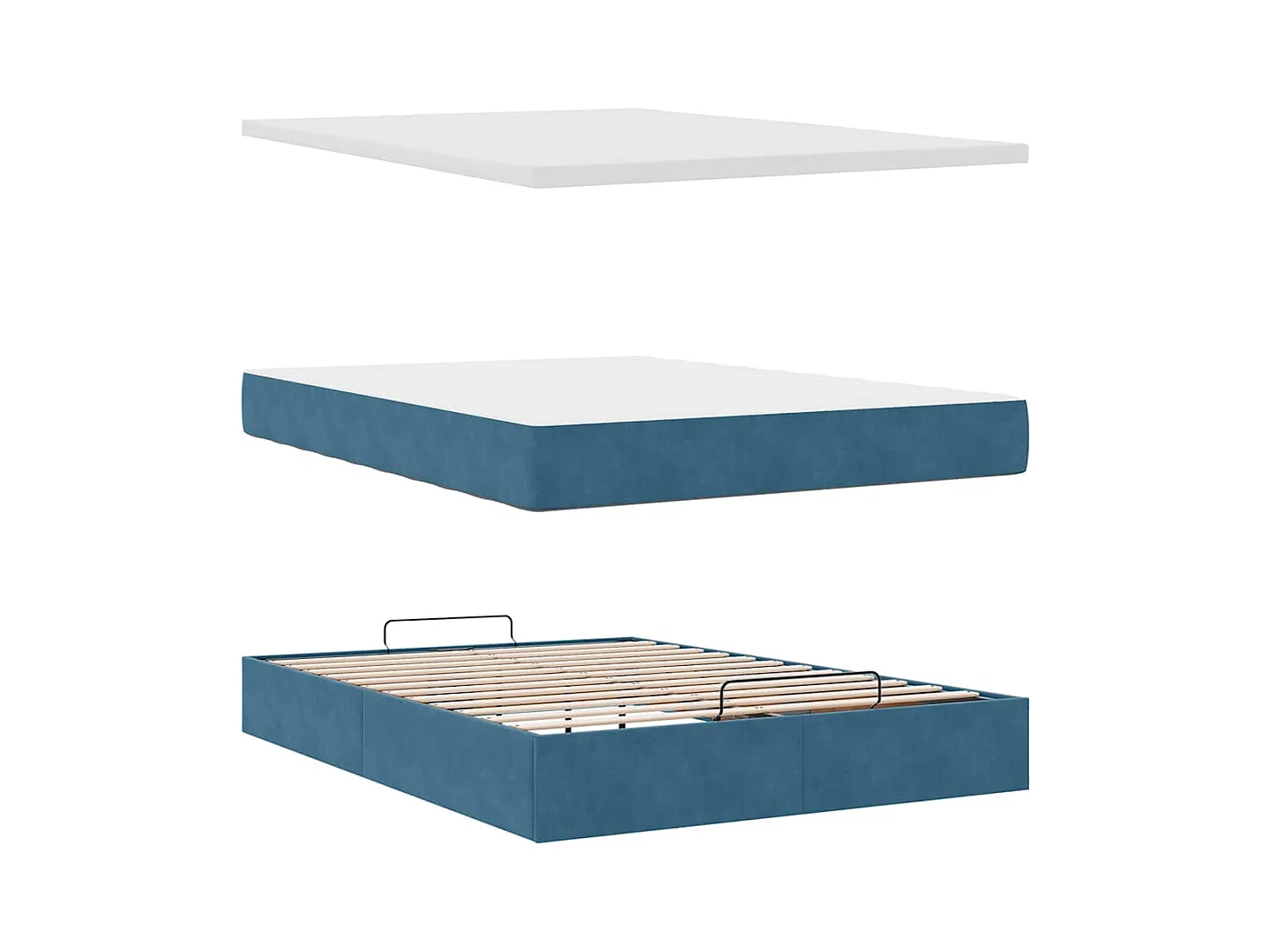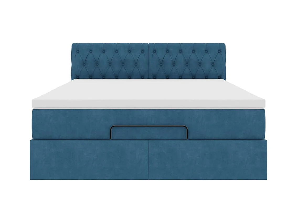 Cadre de lit ottoman avec matelas bleu foncé 140x200 cm velours