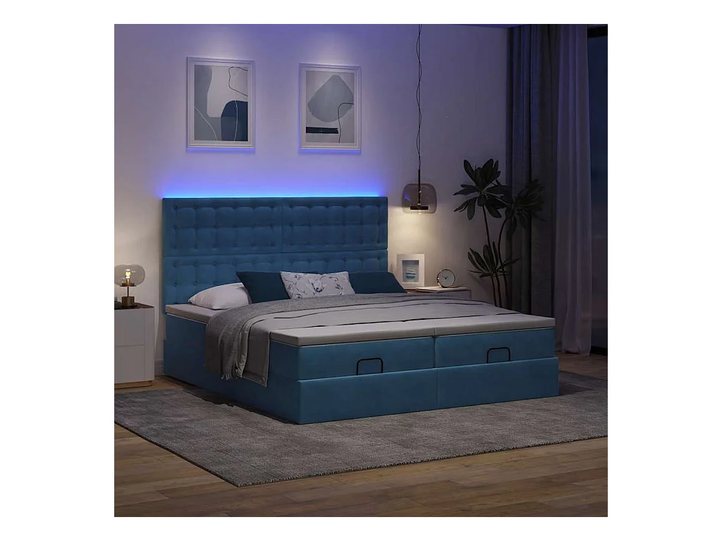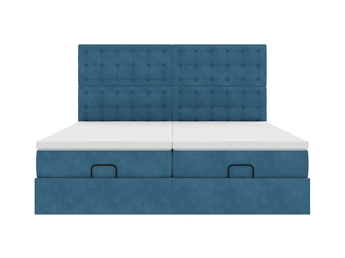 Cadre de lit ottoman avec matelas bleu foncé 180x200 cm velours
