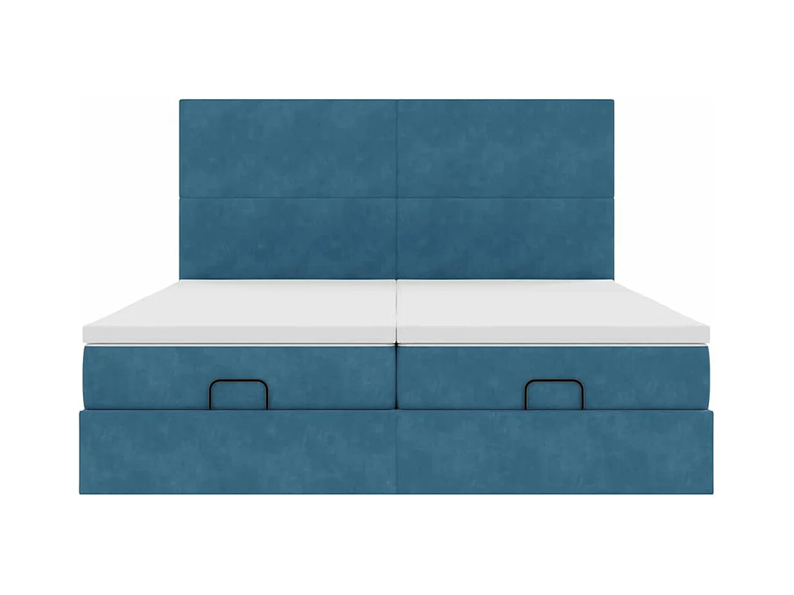 Cadre de lit ottoman avec matelas bleu foncé 200x200 cm velours