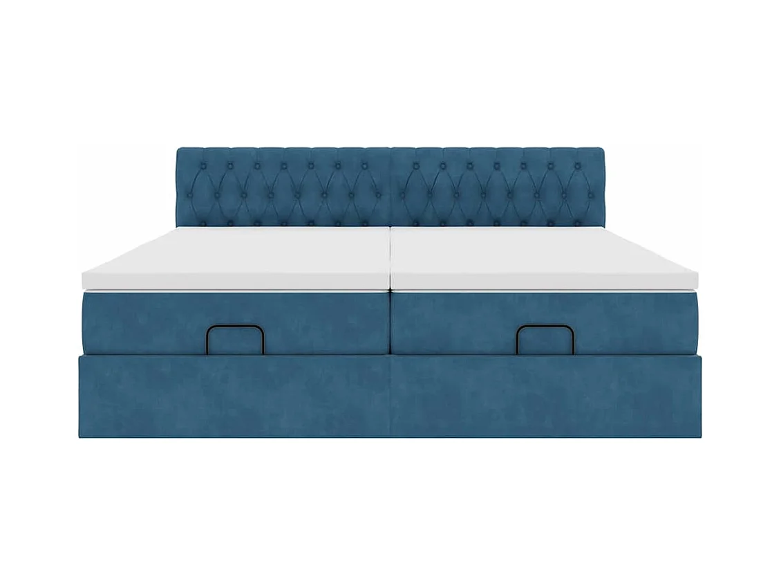Cadre de lit ottoman avec matelas bleu foncé 200x200 cm velours