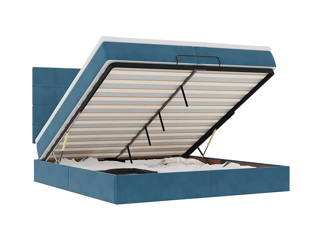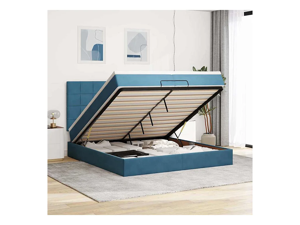 Cadre de lit Bleu 200 x 200 cm Tissu en velours côtelé