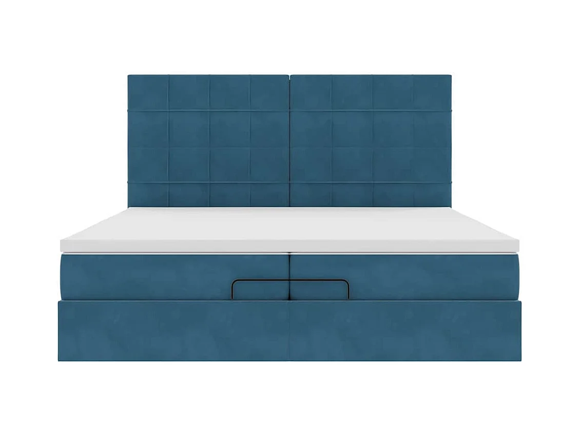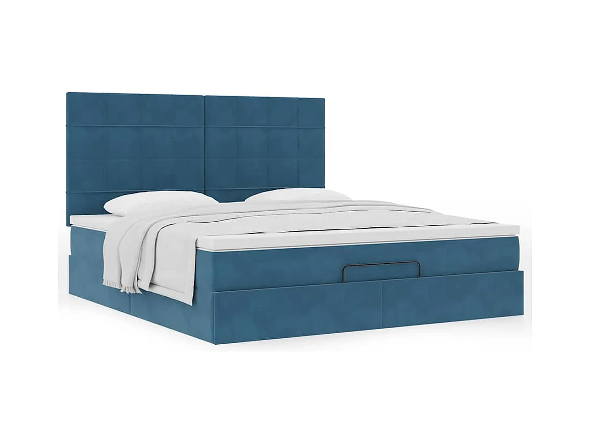 Cadre de lit ottoman avec matelas bleu foncé 200x200 cm velours