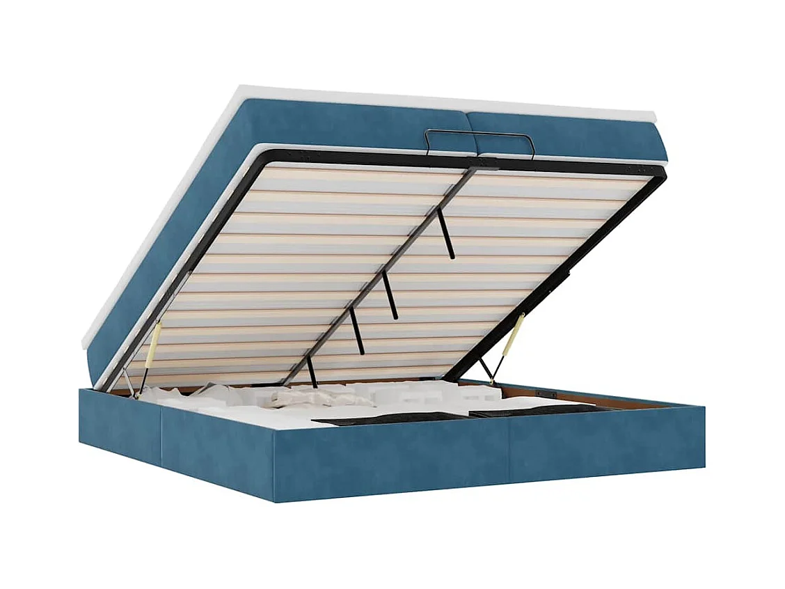 Lit double velours bleu tête de lit capitonnée Lenzo - 4 tailles-200x200