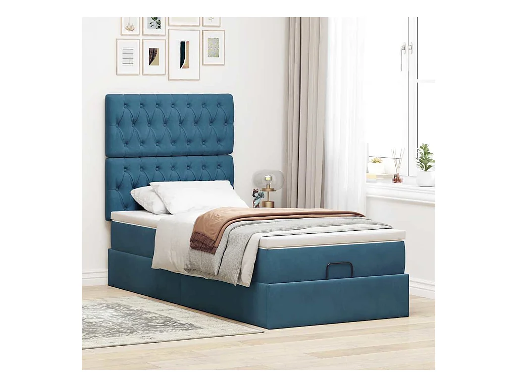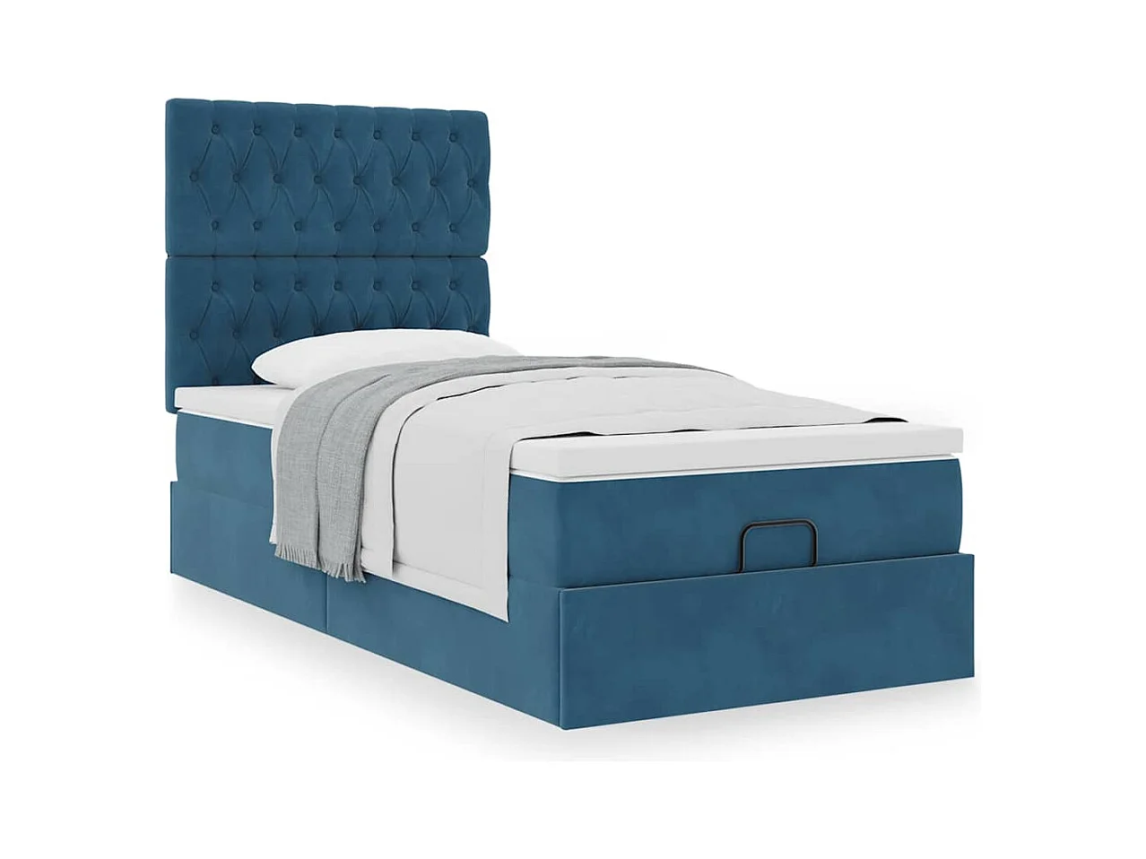 Cadre de lit ottoman avec matelas bleu foncé 90x200 cm velours