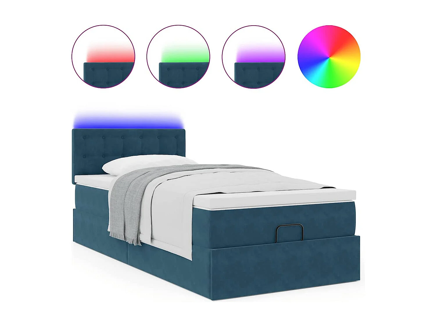 Cadre de lit ottoman avec matelas bleu foncé 90x200 cm velours