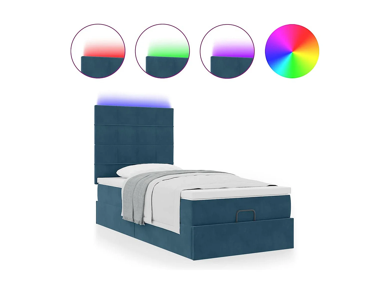 Cadre de lit ottoman avec matelas bleu foncé 90x200 cm velours