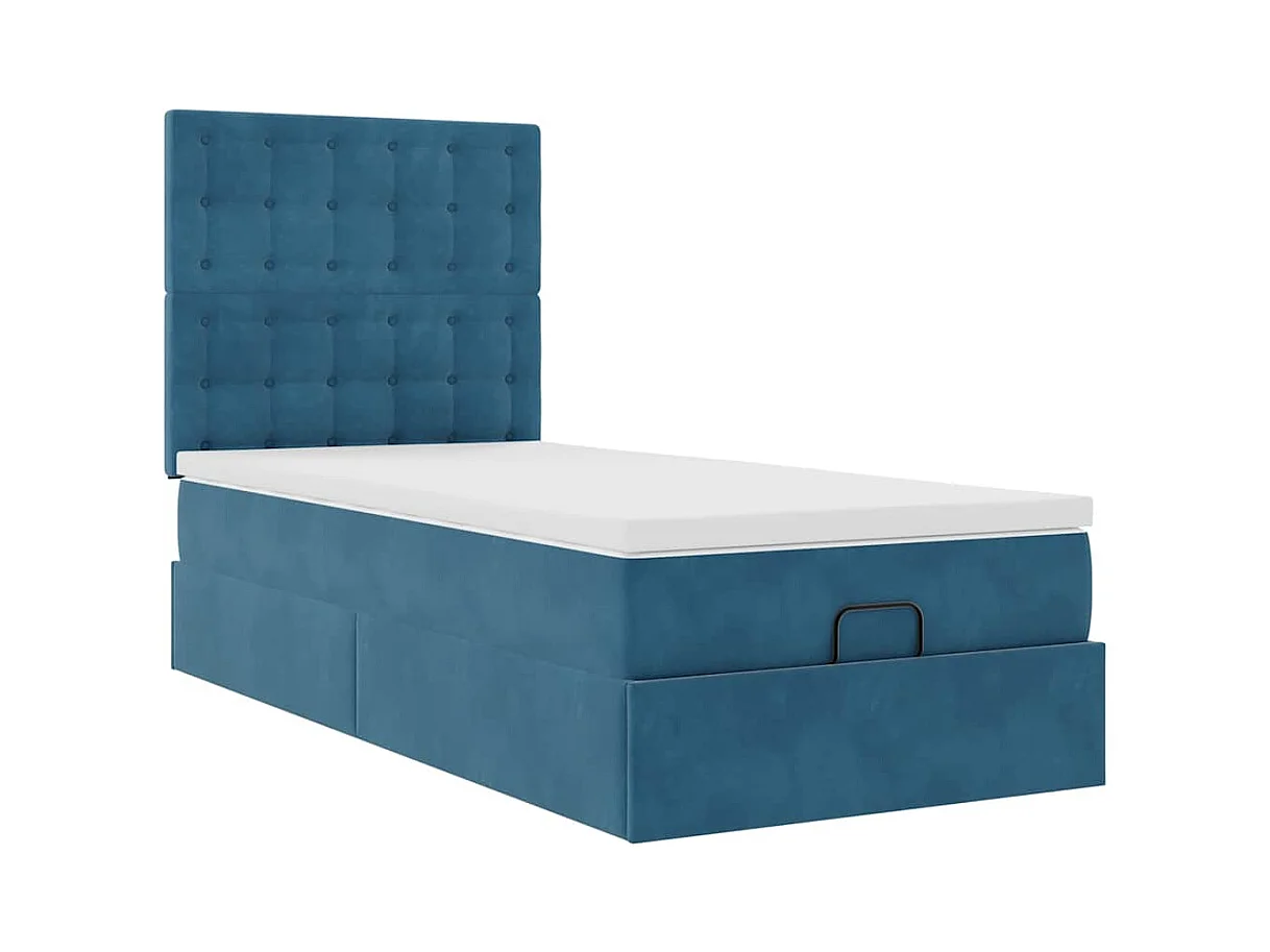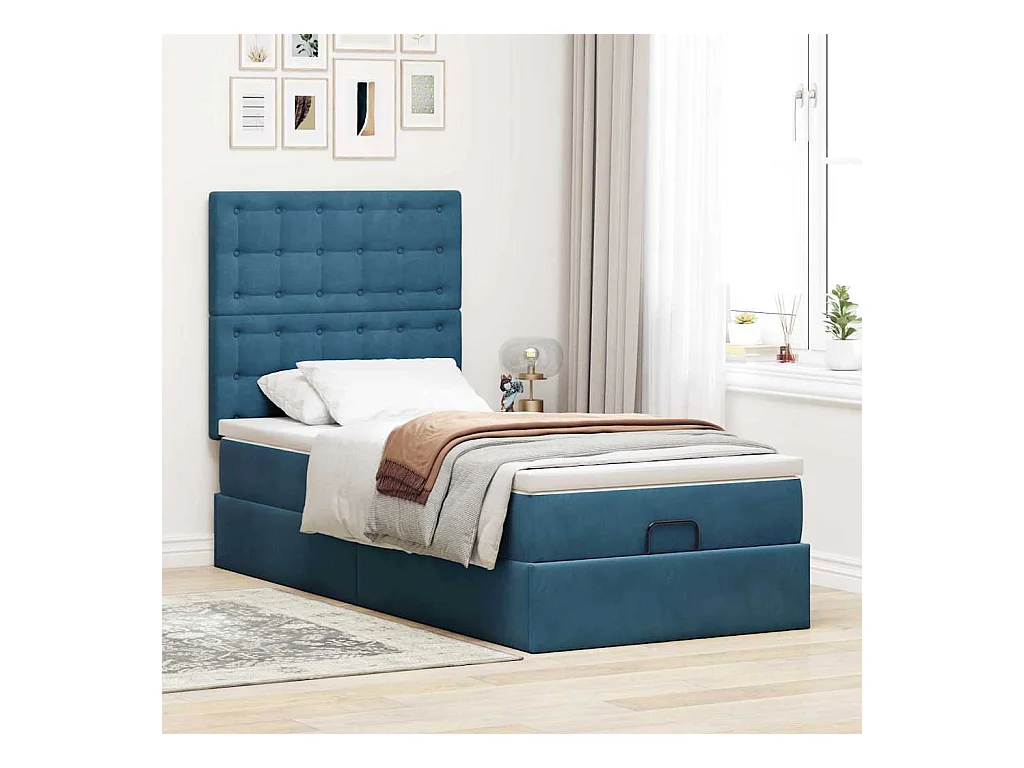 Cadre de lit ottoman avec matelas bleu foncé 90x200 cm velours