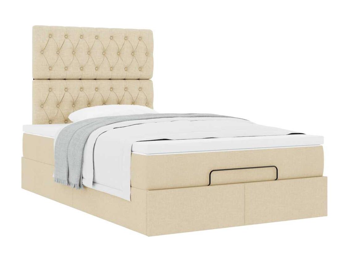 Cadre de lit ottoman avec matelas crème 120x200cm tissu