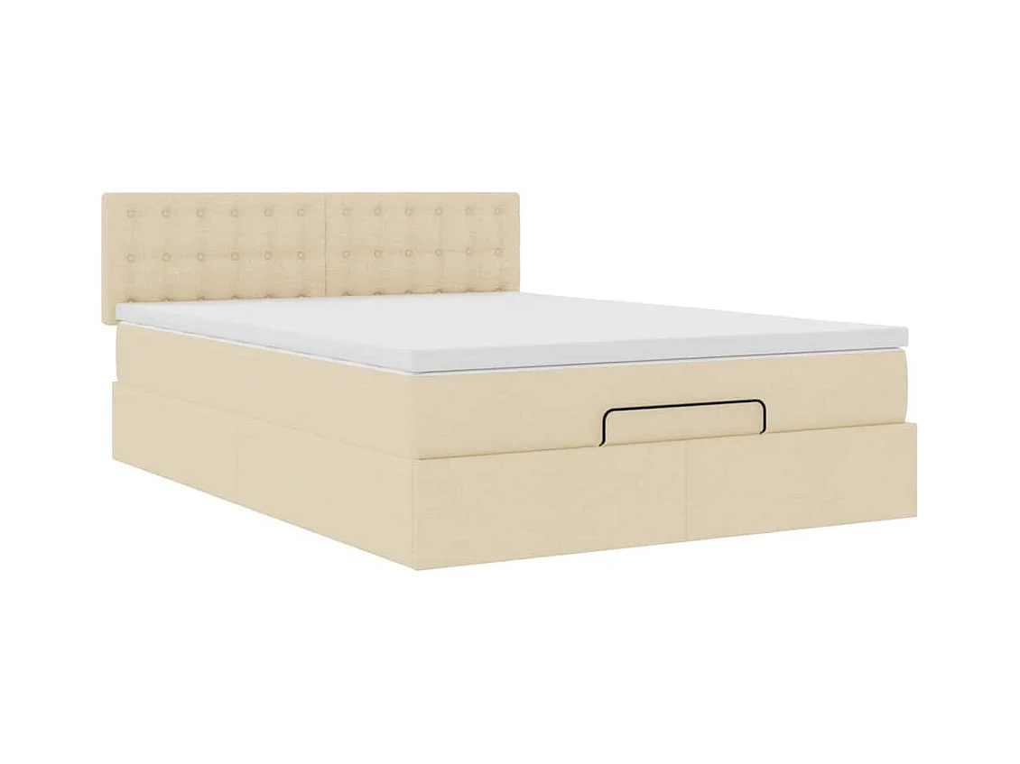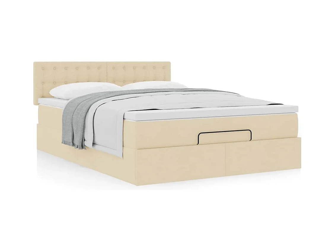 Cadre de lit ottoman avec matelas crème 140x200 cm tissu