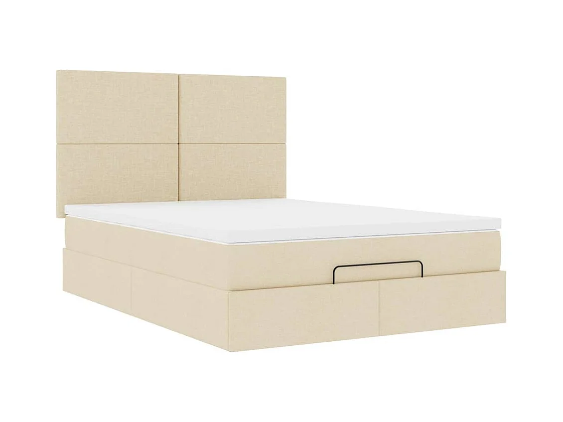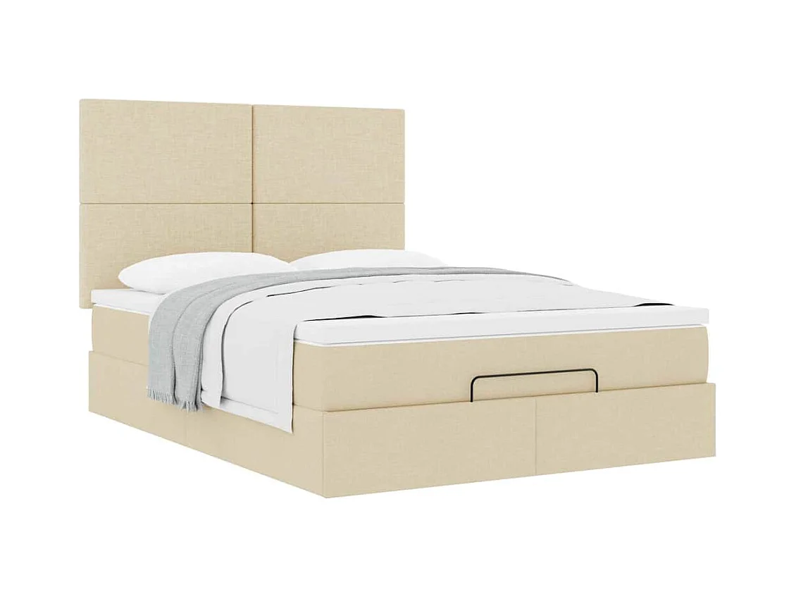 Cadre de lit ottoman avec matelas crème 140x200 cm tissu