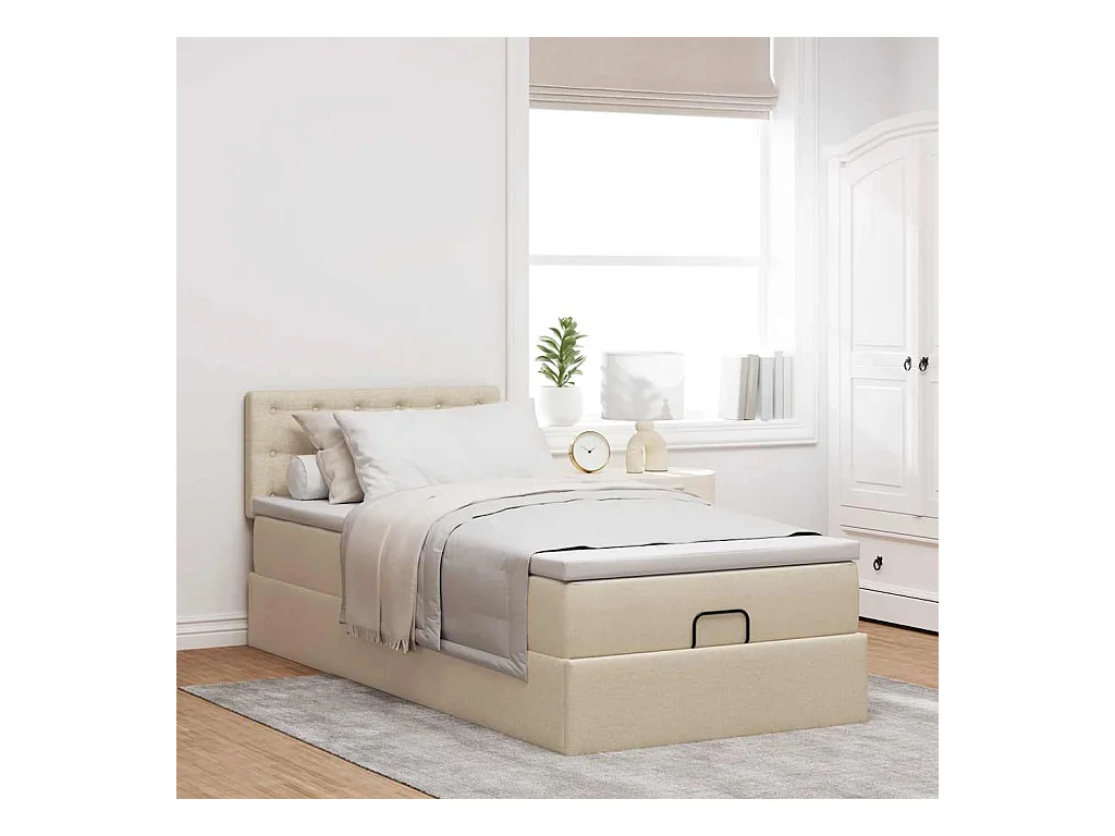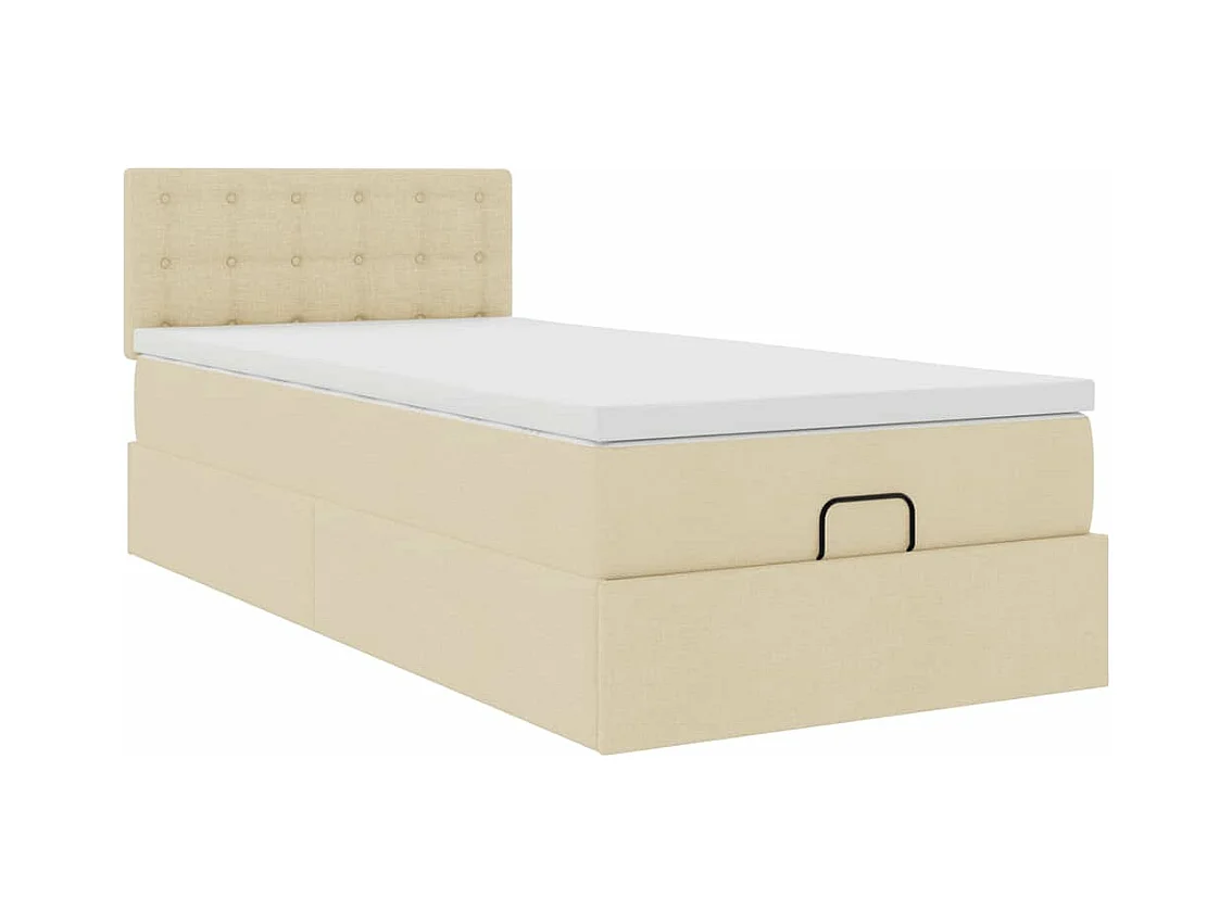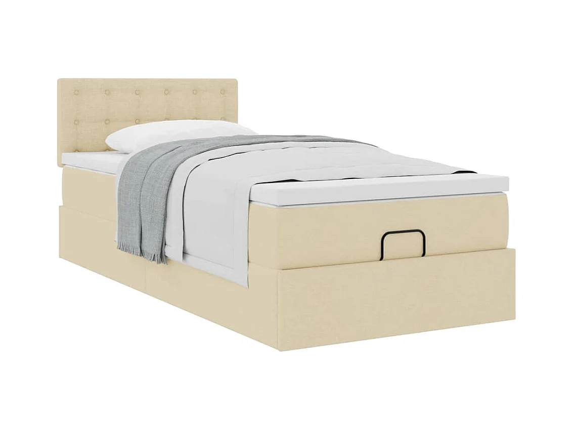 Cadre de lit ottoman avec matelas crème 90x190 cm tissu