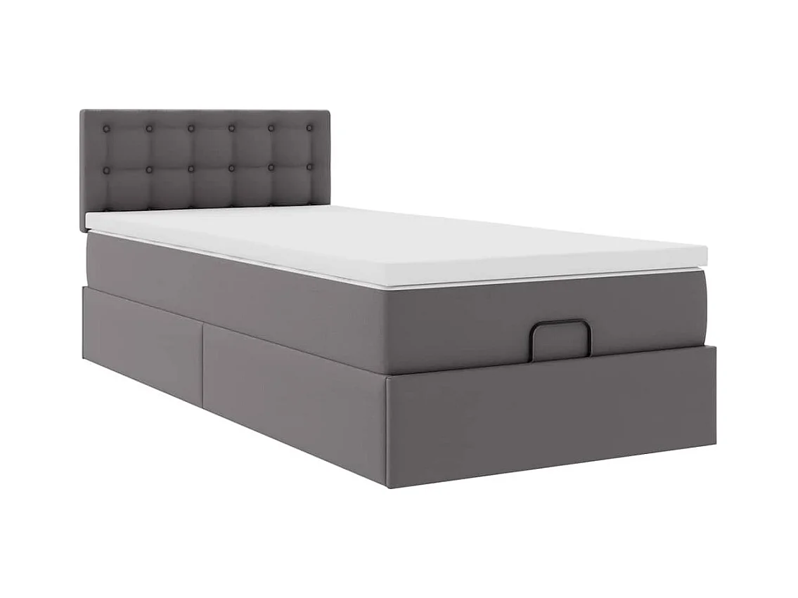 Cadre de lit ottoman avec matelas gris 100x200 cm similicuir