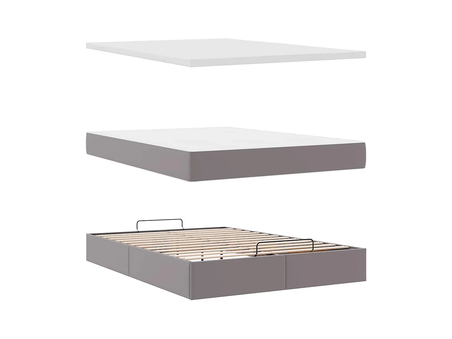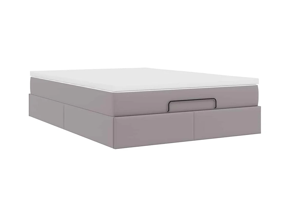 Cadre de lit ottoman avec matelas gris 140x200 cm similicuir