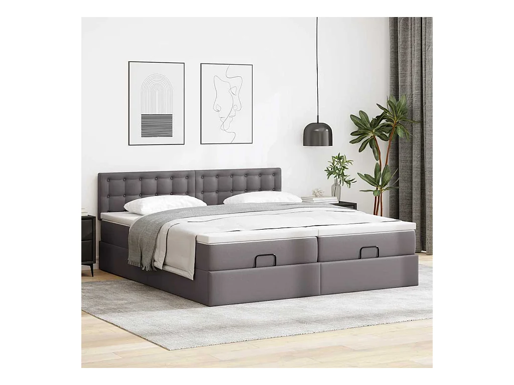 Cadre de lit ottoman avec matelas gris 180x200 cm similicuir