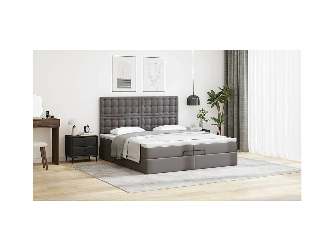 Cadre de lit ottoman avec matelas gris 200x200 cm similicuir